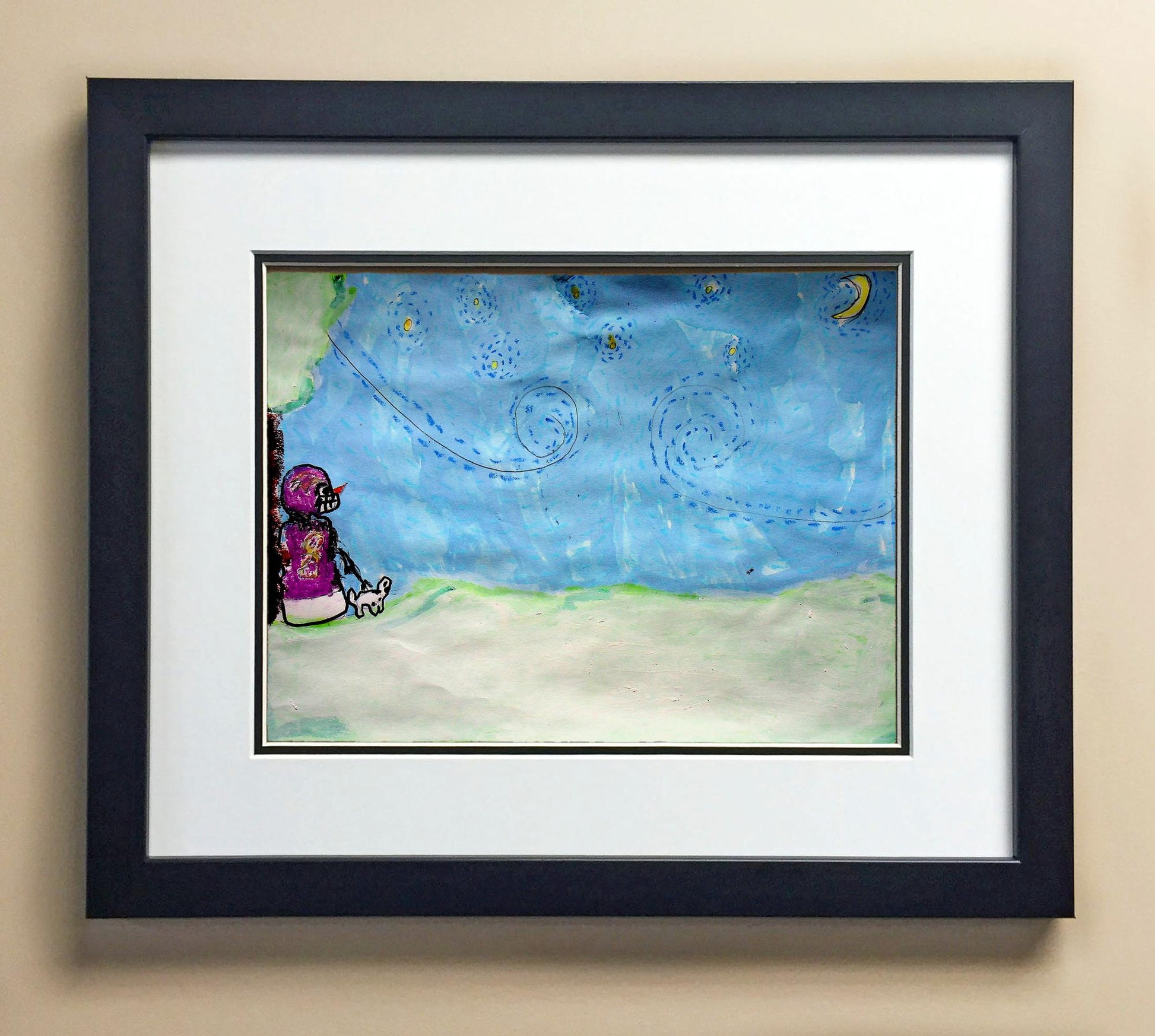 Included with the purchase is the Students Artwork, Frame, double matboard, shatter proof plexiglass, and a ready to hang backerboard with turnbuttons