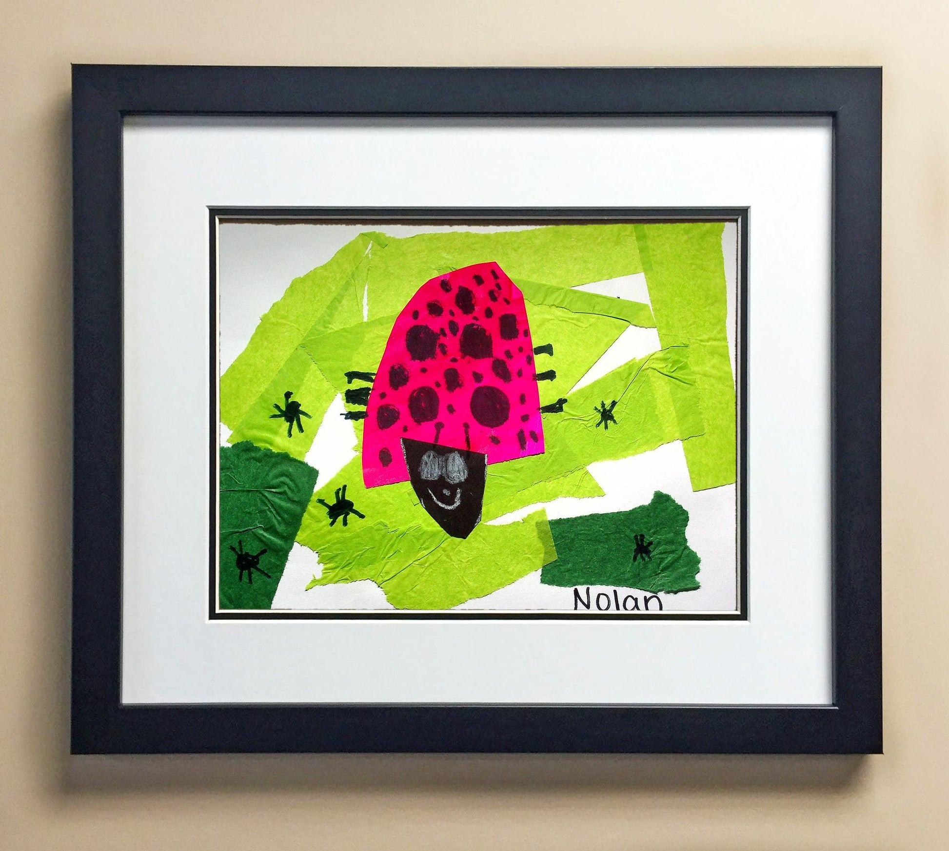 Included with the purchase is the Students Artwork, Frame, double matboard, shatter proof plexiglass, and a ready to hang backerboard with turnbuttons