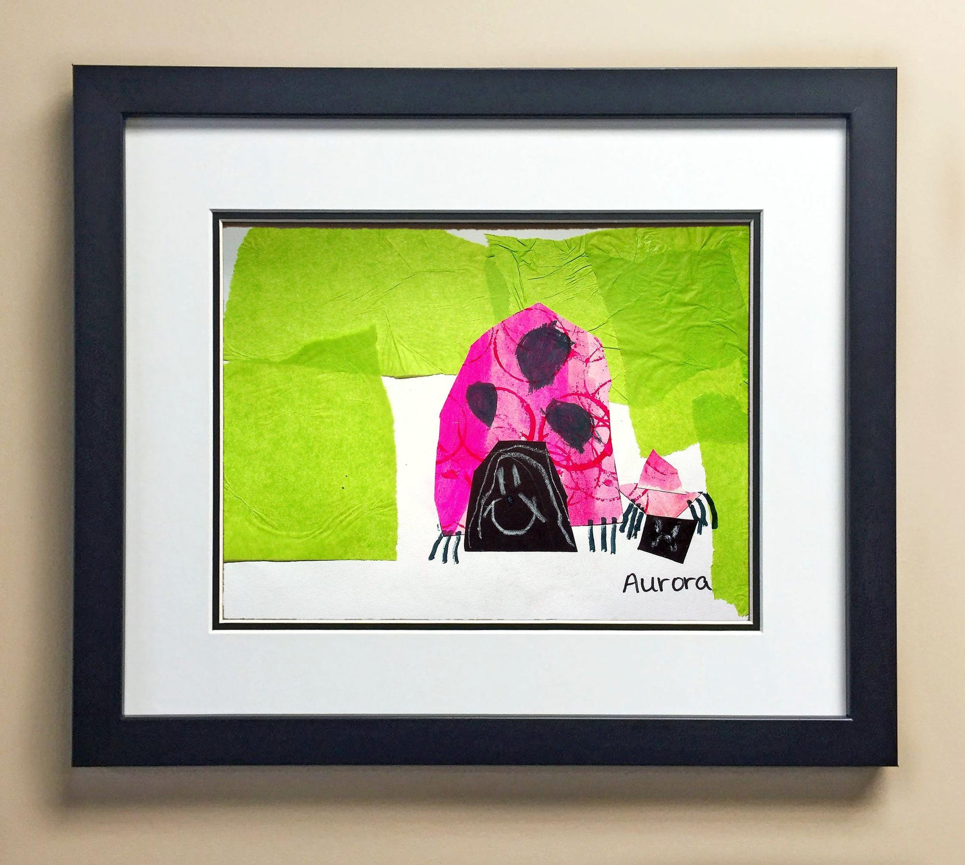 Included with the purchase is the Students Artwork, Frame, double matboard, shatter proof plexiglass, and a ready to hang backerboard with turnbuttons