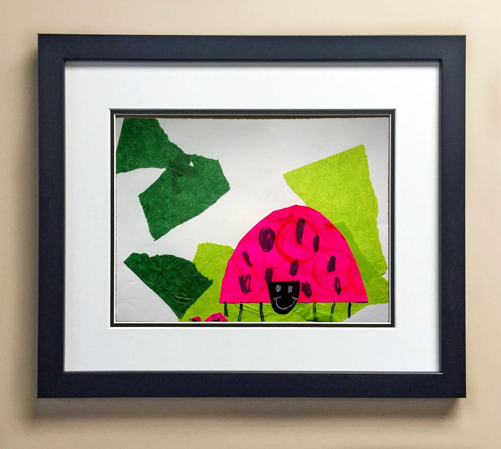 Included with the purchase is the Students Artwork, Frame, double matboard, shatter proof plexiglass, and a ready to hang backerboard with turnbuttons