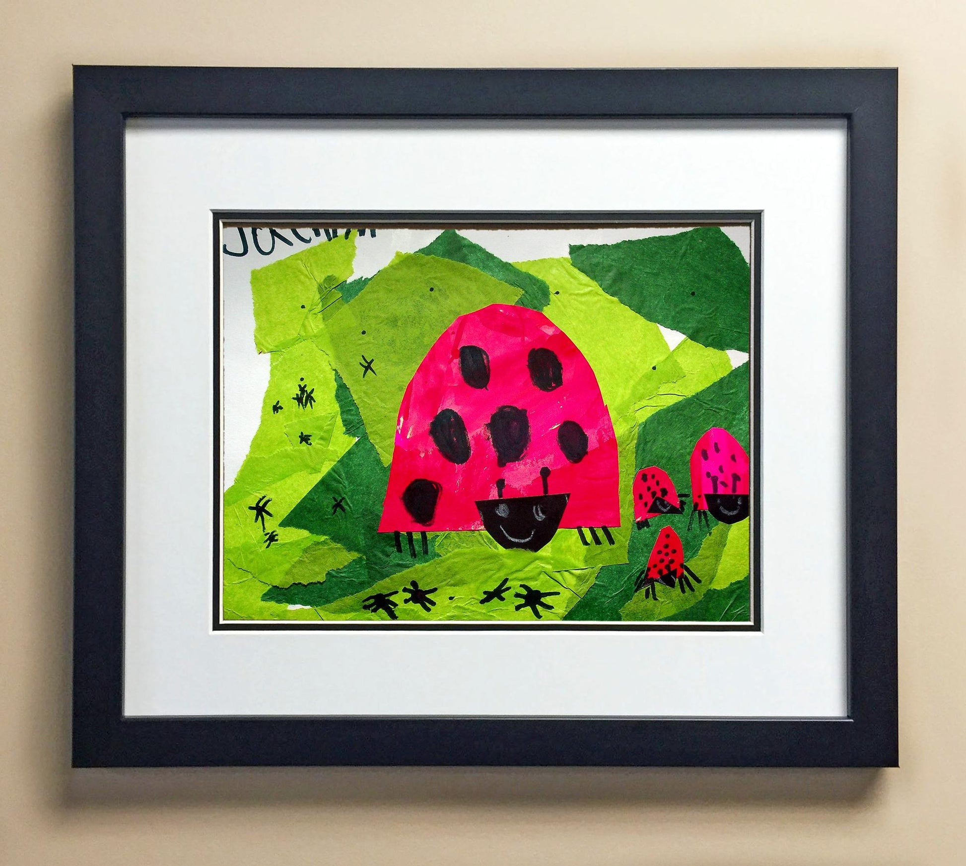 Included with the purchase is the Students Artwork, Frame, double matboard, shatter proof plexiglass, and a ready to hang backerboard with turnbuttons