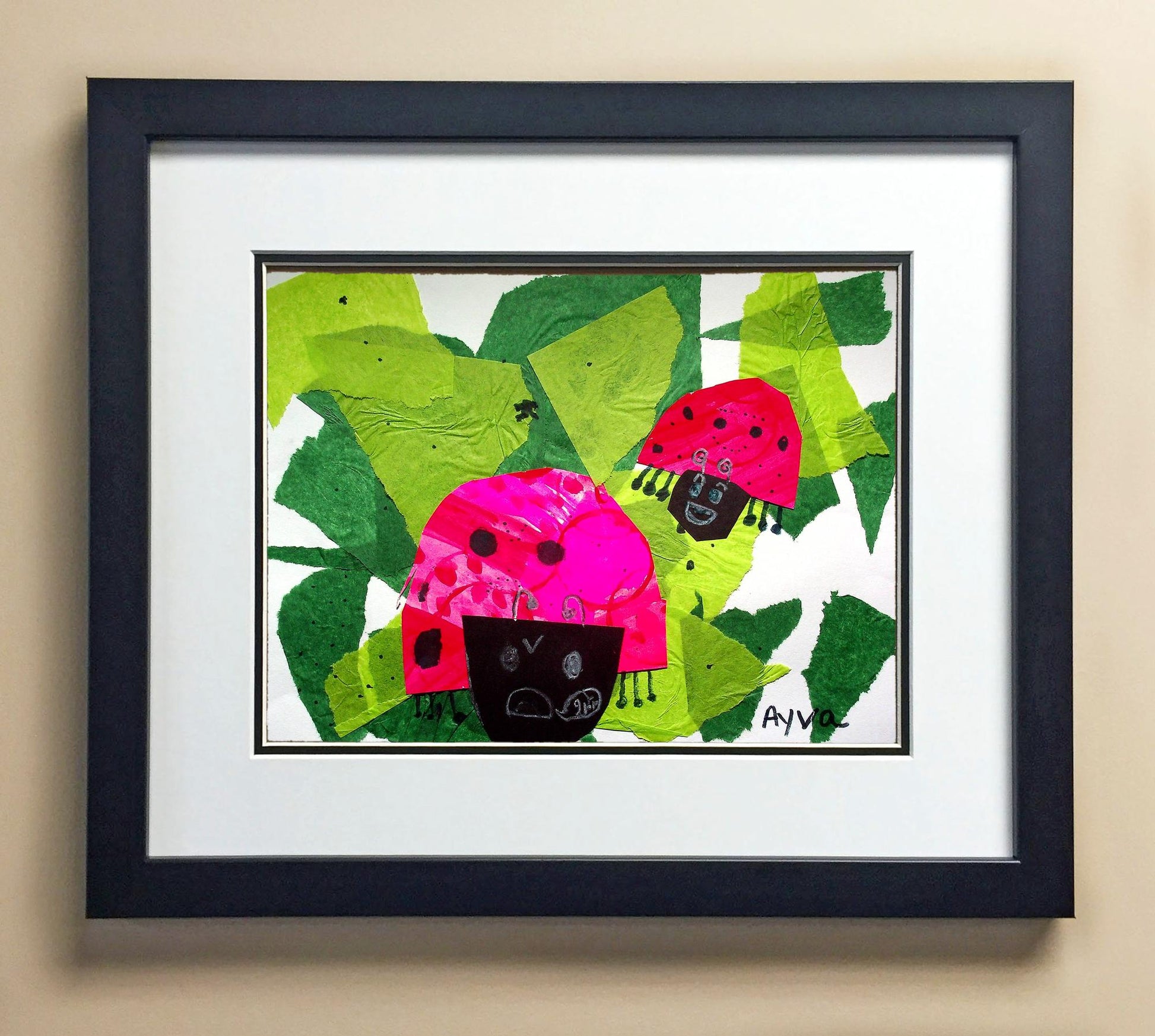 Included with the purchase is the Students Artwork, Frame, double matboard, shatter proof plexiglass, and a ready to hang backerboard with turnbuttons