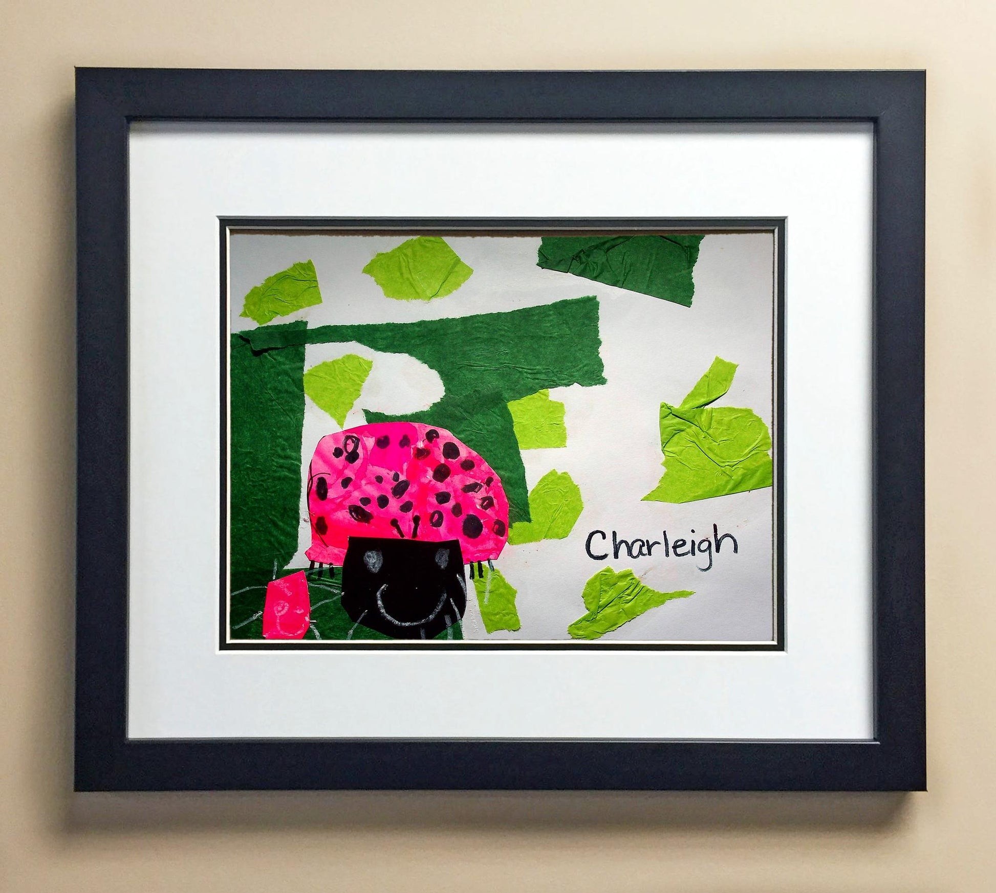 Included with the purchase is the Students Artwork, Frame, double matboard, shatter proof plexiglass, and a ready to hang backerboard with turnbuttons
