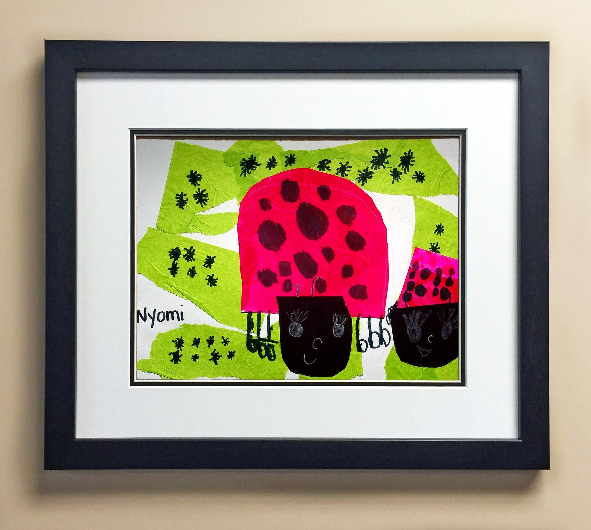 Included with the purchase is the Students Artwork, Frame, double matboard, shatter proof plexiglass, and a ready to hang backerboard with turnbuttons