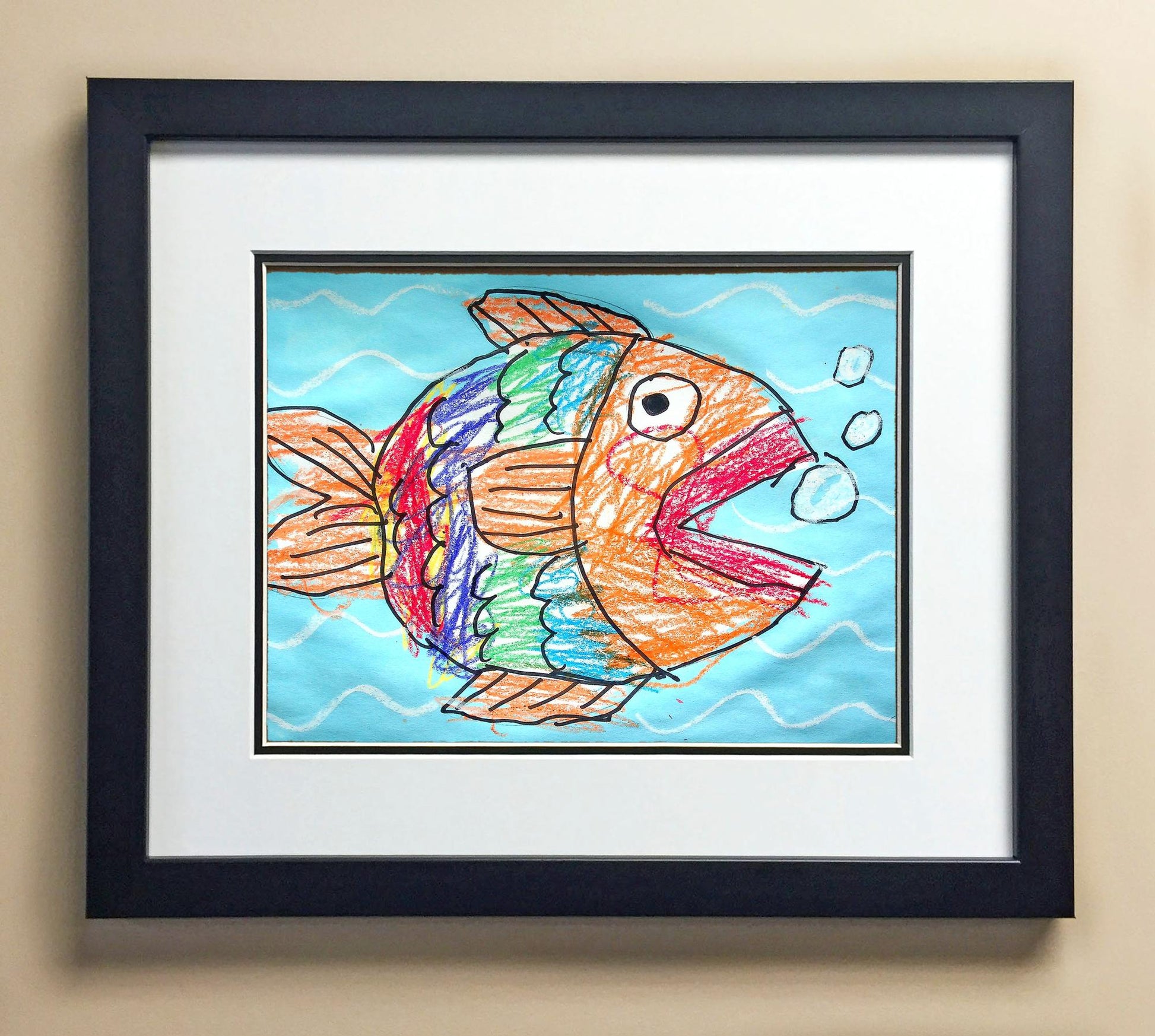 Included with the purchase is the Students Artwork, Frame, double matboard, shatter proof plexiglass, and a ready to hang backerboard with turnbuttons
