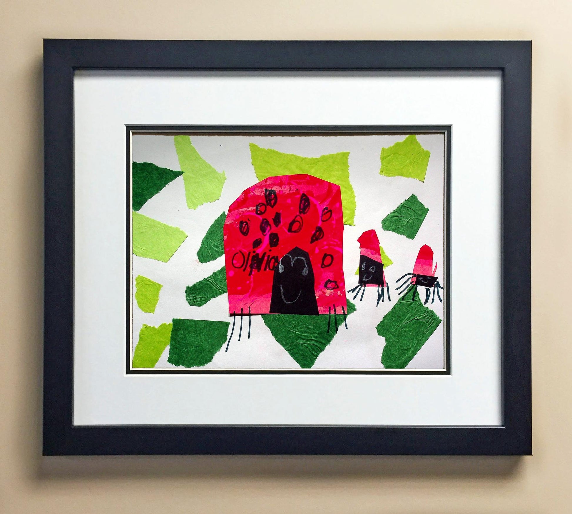 Included with the purchase is the Students Artwork, Frame, double matboard, shatter proof plexiglass, and a ready to hang backerboard with turnbuttons