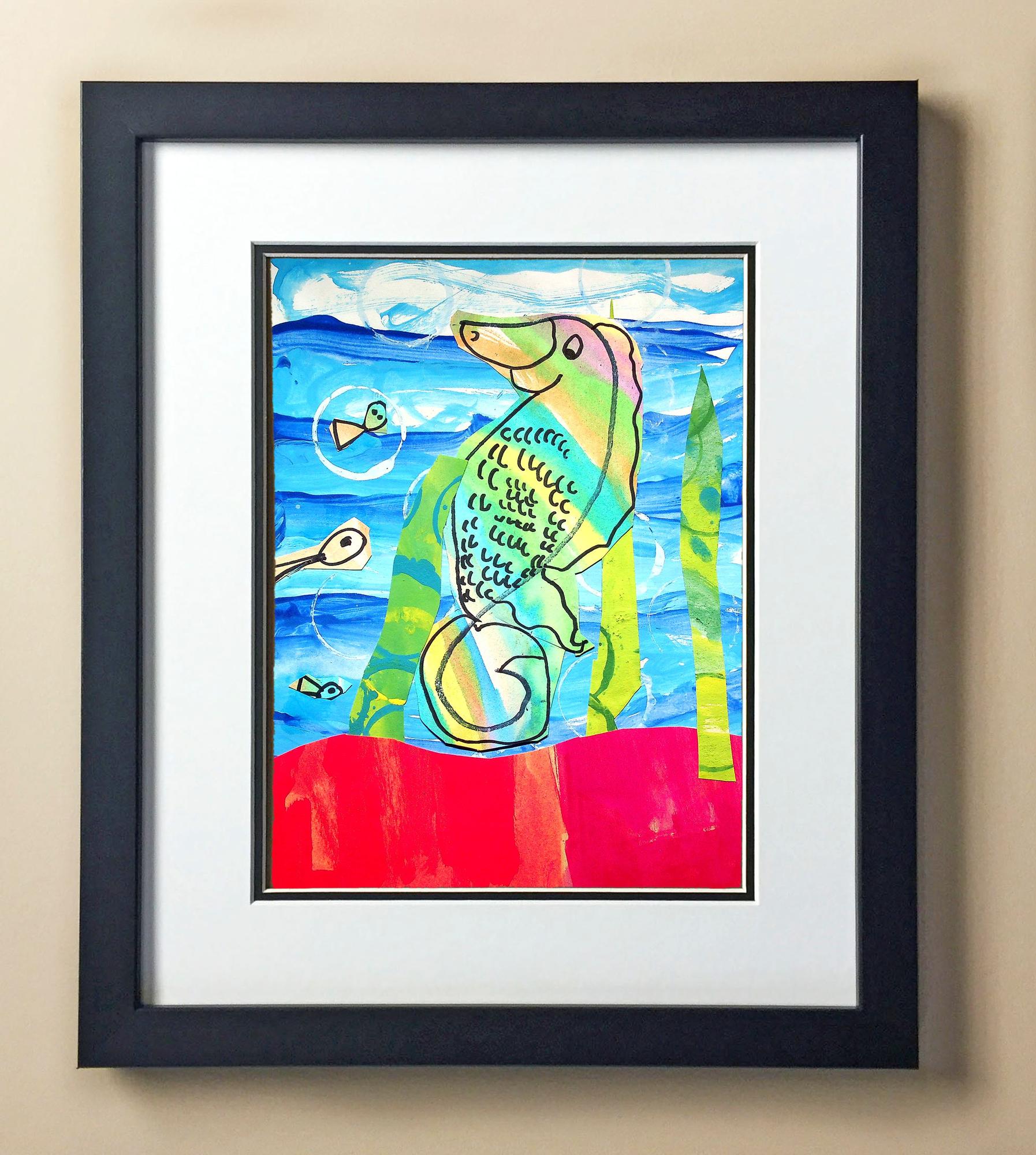 Included with the purchase is the Students Artwork, Frame, double matboard, shatter proof plexiglass, and a ready to hang backerboard with turnbuttons