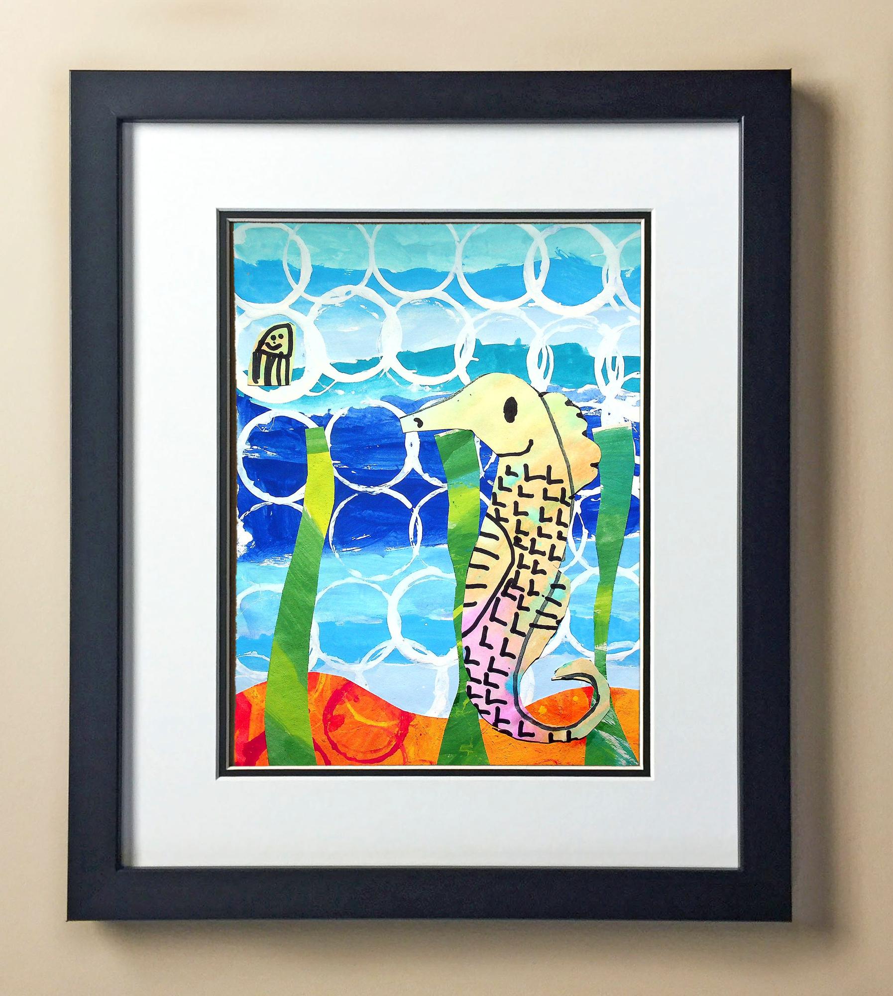 Included with the purchase is the Students Artwork, Frame, double matboard, shatter proof plexiglass, and a ready to hang backerboard with turnbuttons