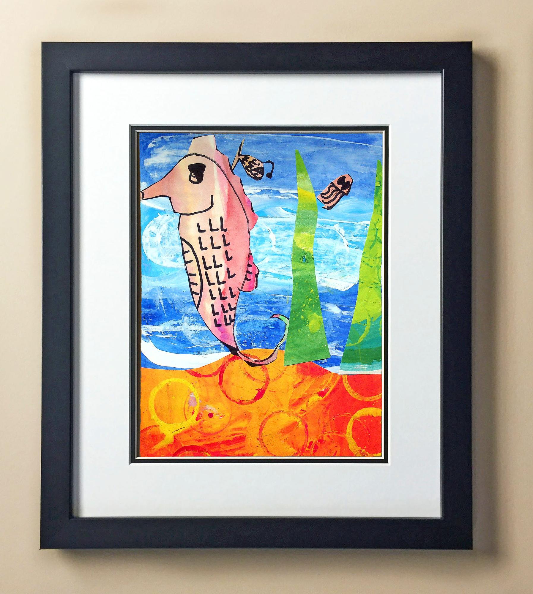 Included with the purchase is the Students Artwork, Frame, double matboard, shatter proof plexiglass, and a ready to hang backerboard with turnbuttons