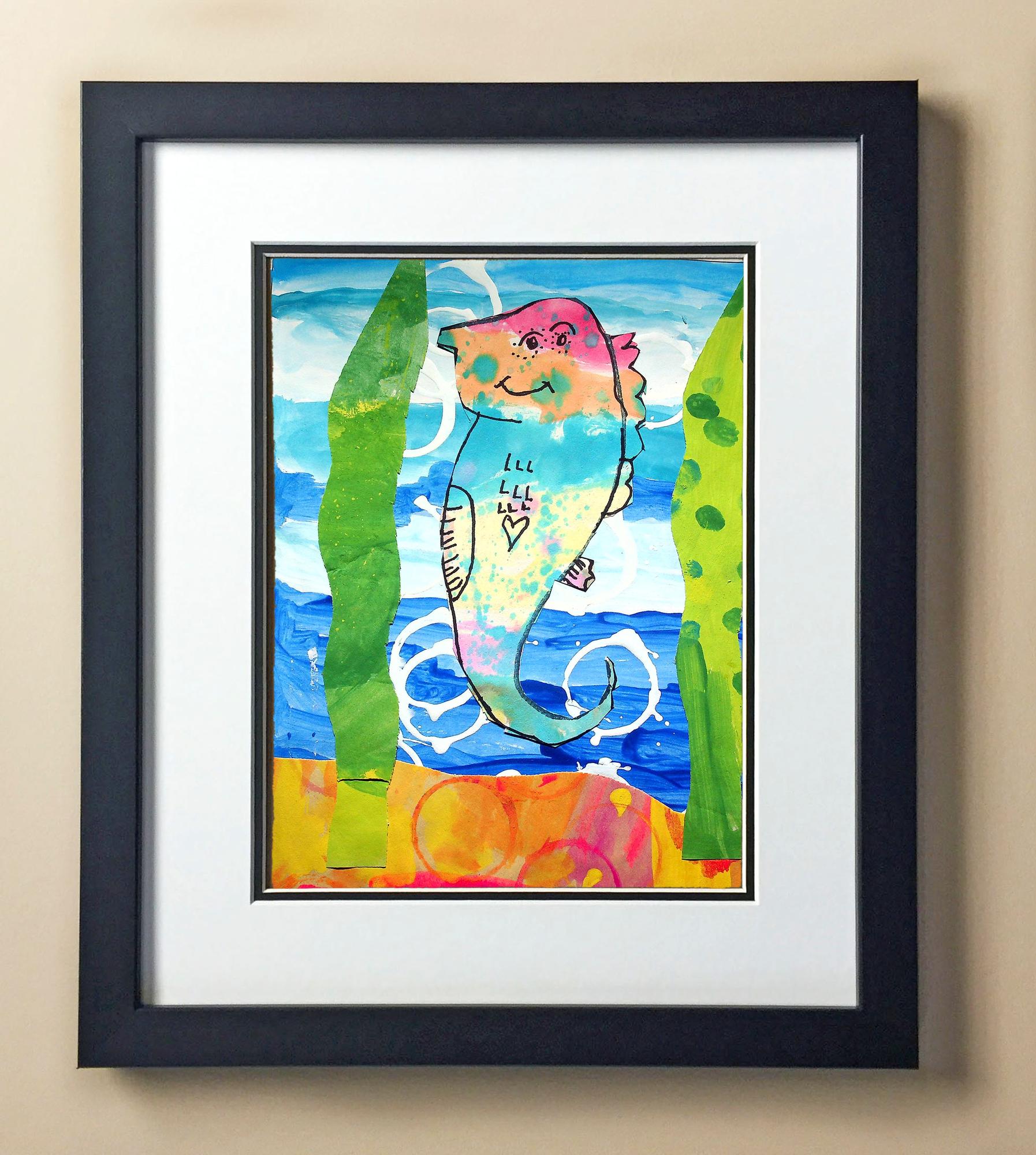 Included with the purchase is the Students Artwork, Frame, double matboard, shatter proof plexiglass, and a ready to hang backerboard with turnbuttons