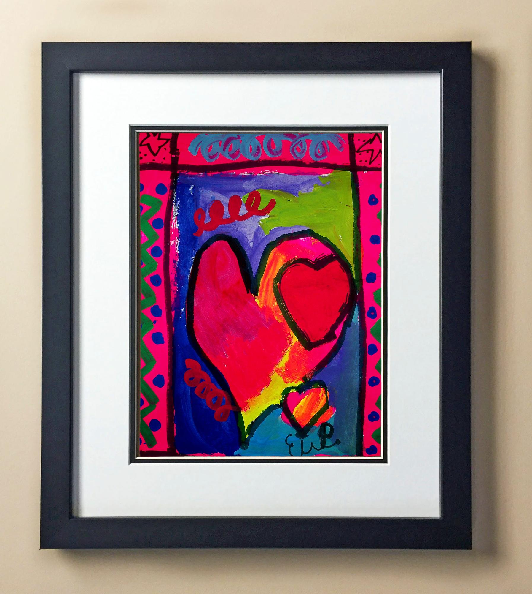 Included with the purchase is the Students Artwork, Frame, double matboard, shatter proof plexiglass, and a ready to hang backerboard with turnbuttons