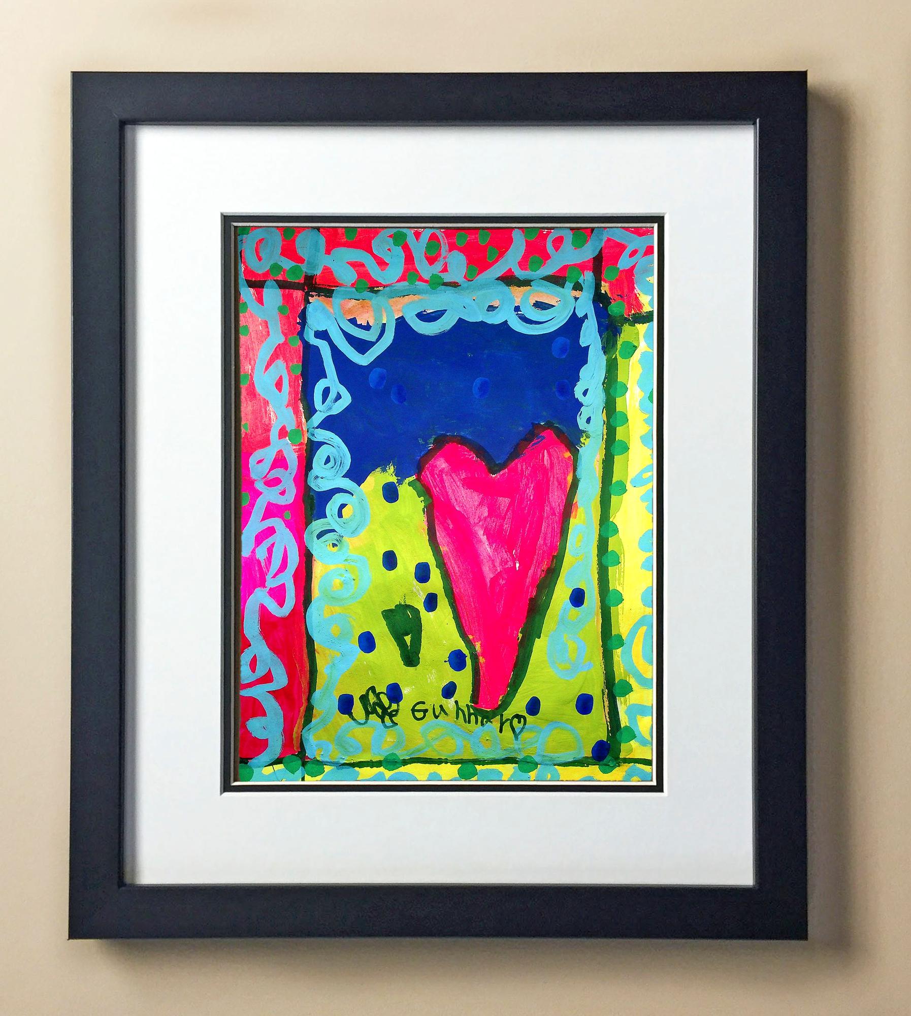 Included with the purchase is the Students Artwork, Frame, double matboard, shatter proof plexiglass, and a ready to hang backerboard with turnbuttons