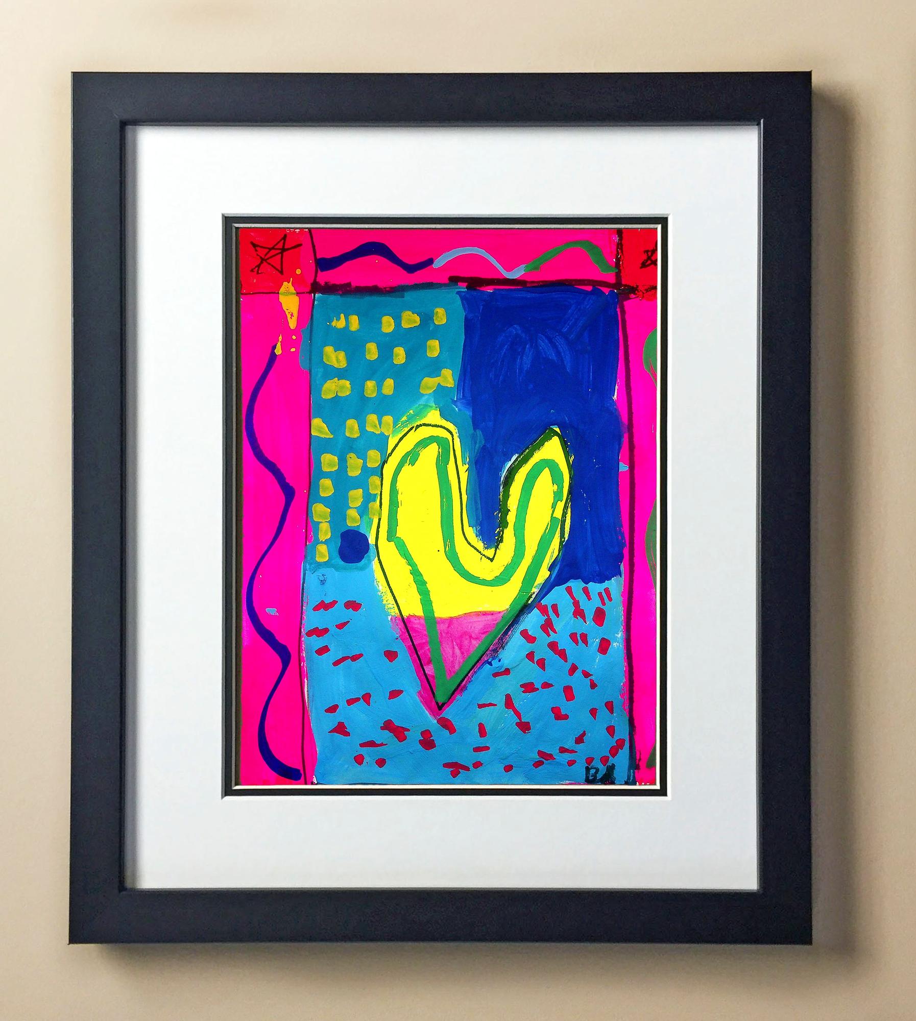 Included with the purchase is the Students Artwork, Frame, double matboard, shatter proof plexiglass, and a ready to hang backerboard with turnbuttons