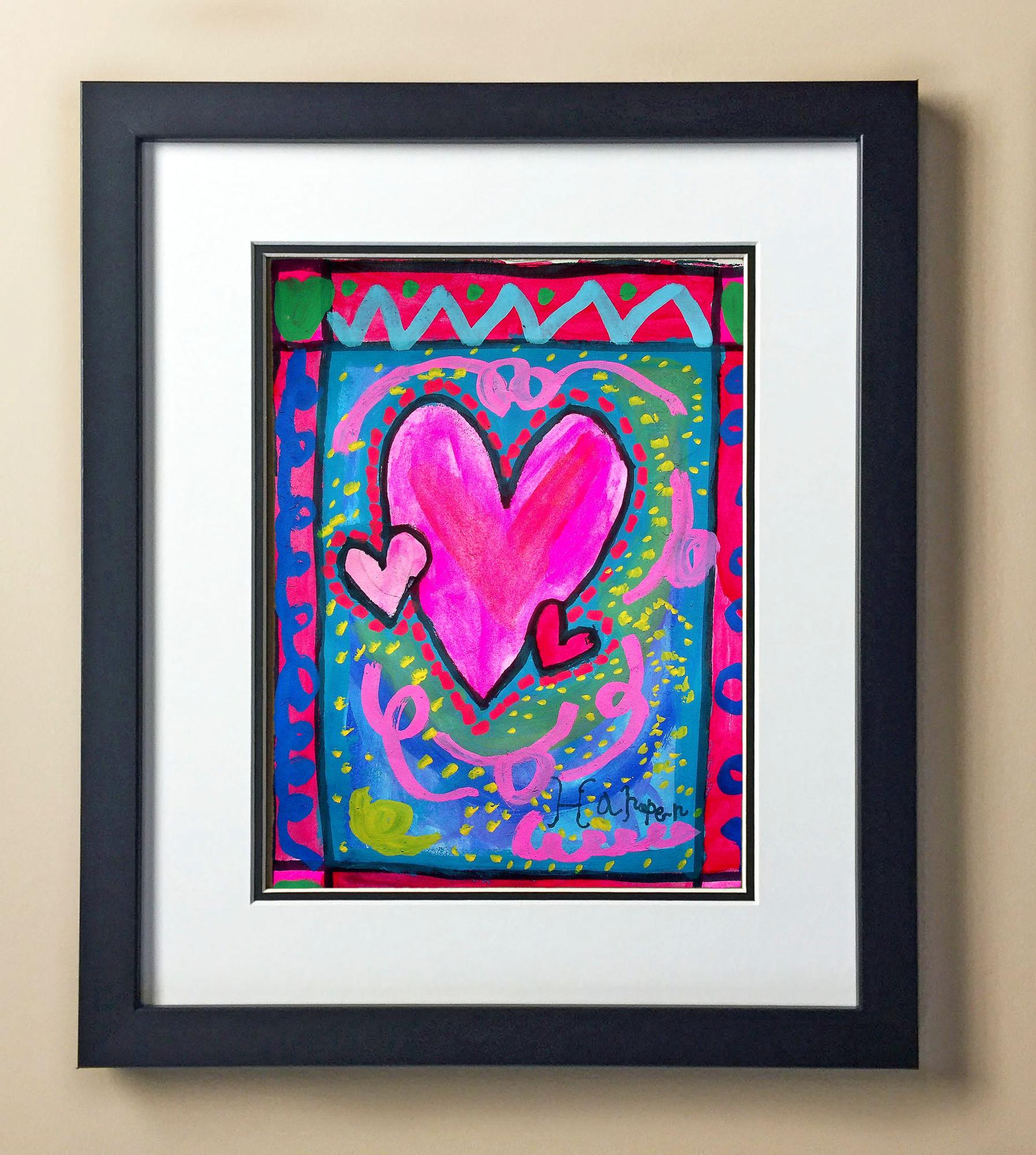 Included with the purchase is the Students Artwork, Frame, double matboard, shatter proof plexiglass, and a ready to hang backerboard with turnbuttons