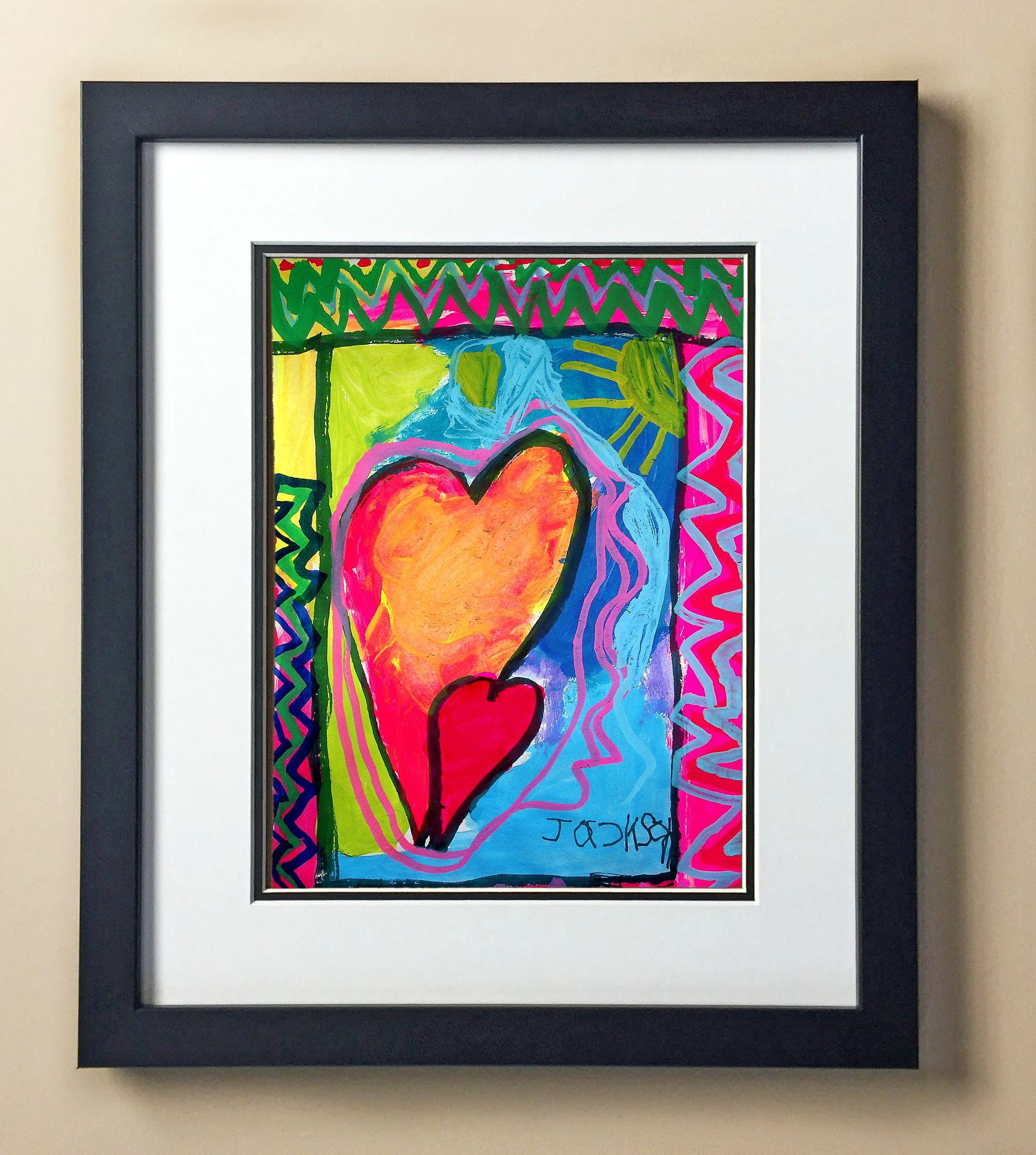 Included with the purchase is the Students Artwork, Frame, double matboard, shatter proof plexiglass, and a ready to hang backerboard with turnbuttons
