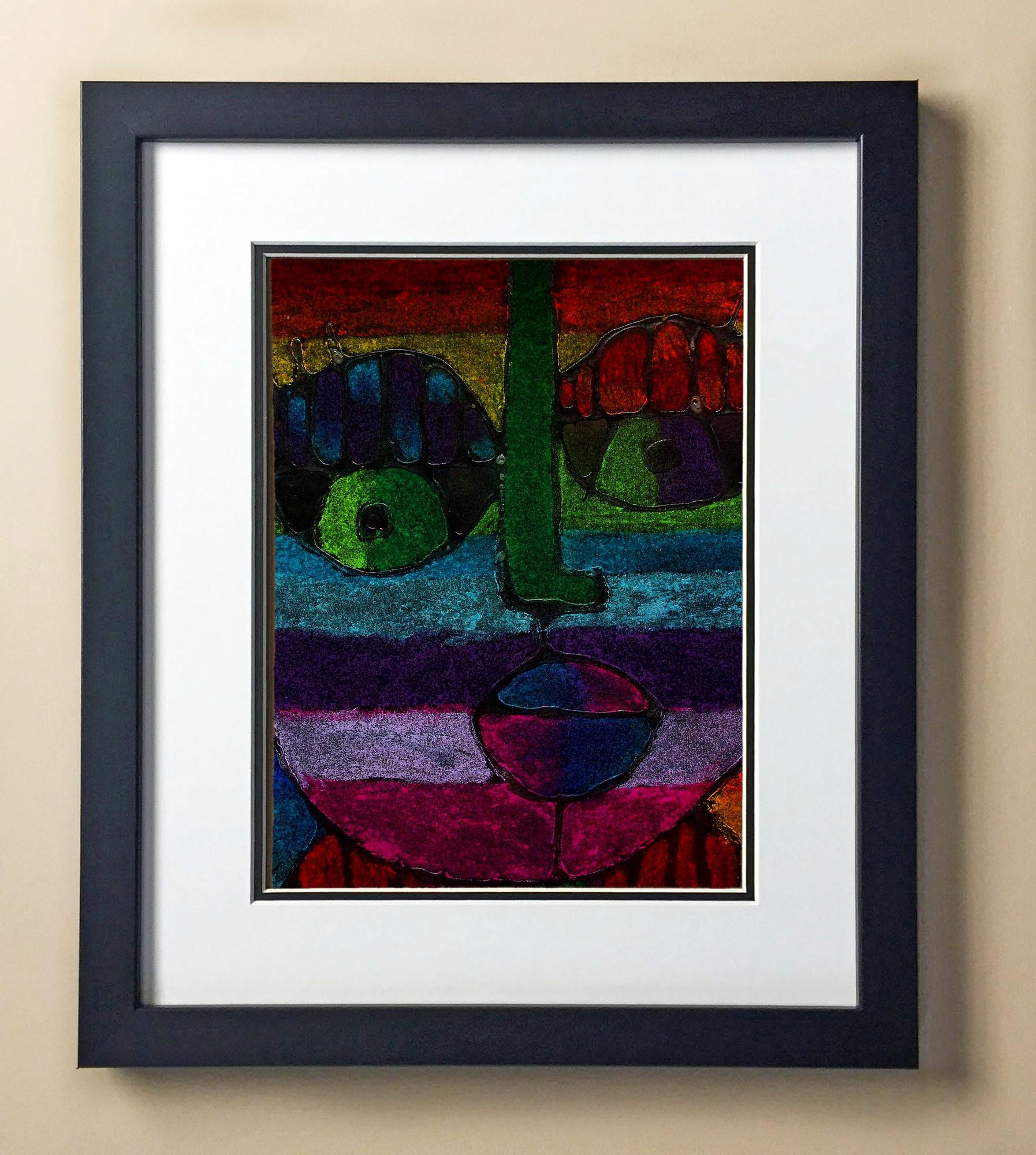 Included with the purchase is the Students Artwork, Frame, double matboard, shatter proof plexiglass, and a ready to hang backerboard with turnbuttons