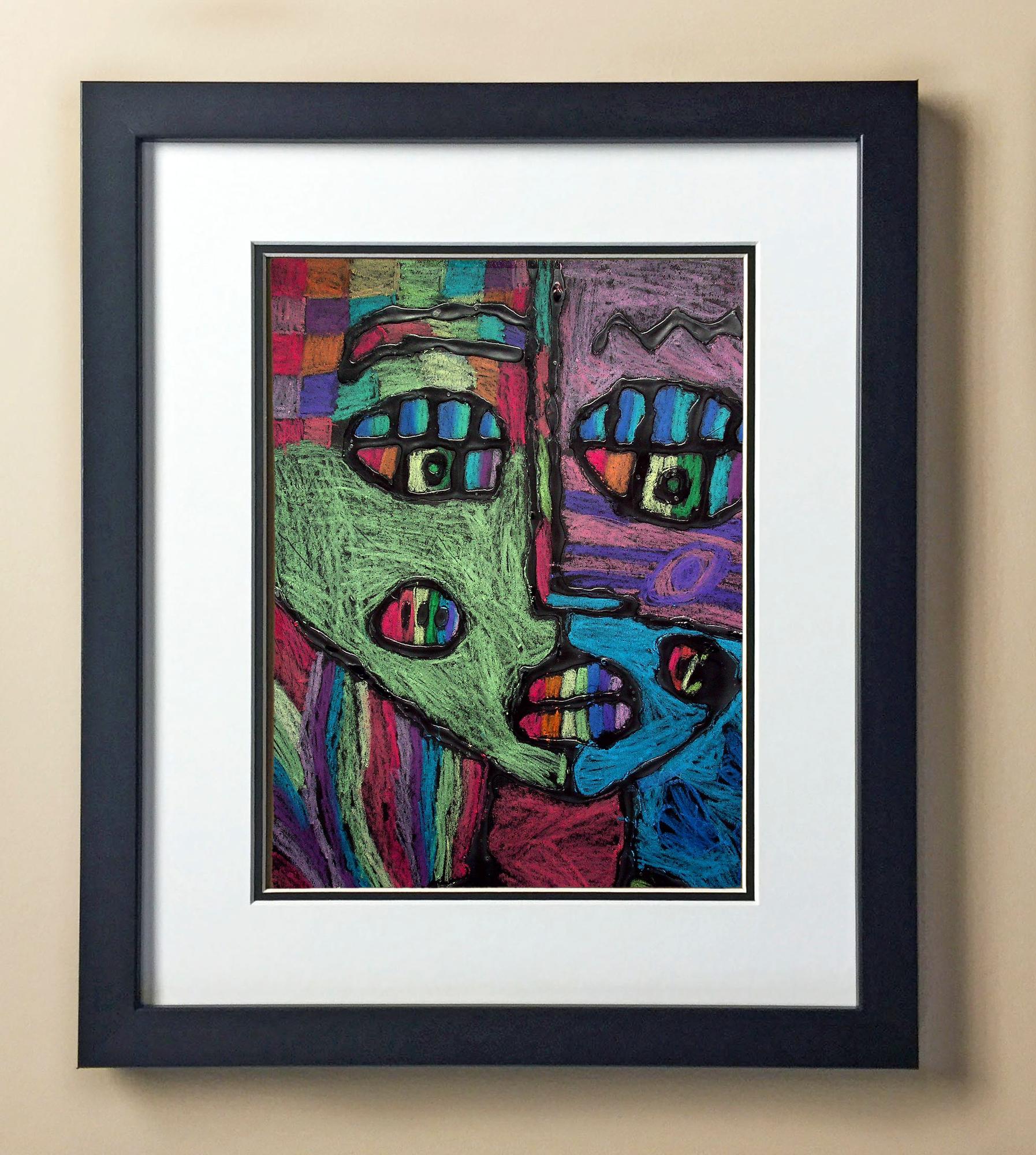 Included with the purchase is the Students Artwork, Frame, double matboard, shatter proof plexiglass, and a ready to hang backerboard with turnbuttons