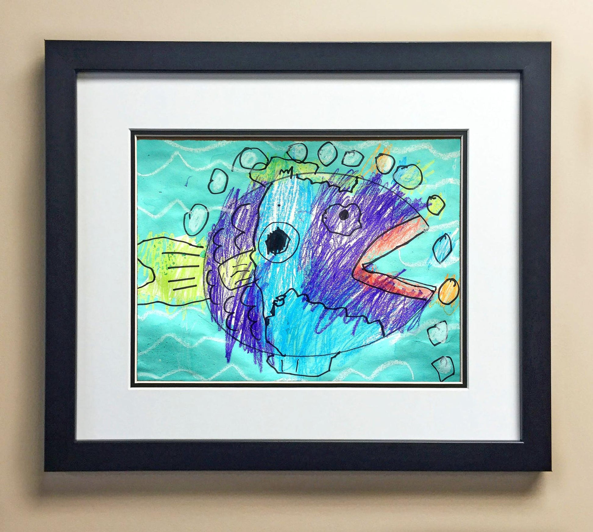 Included with the purchase is the Students Artwork, Frame, double matboard, shatter proof plexiglass, and a ready to hang backerboard with turnbuttons