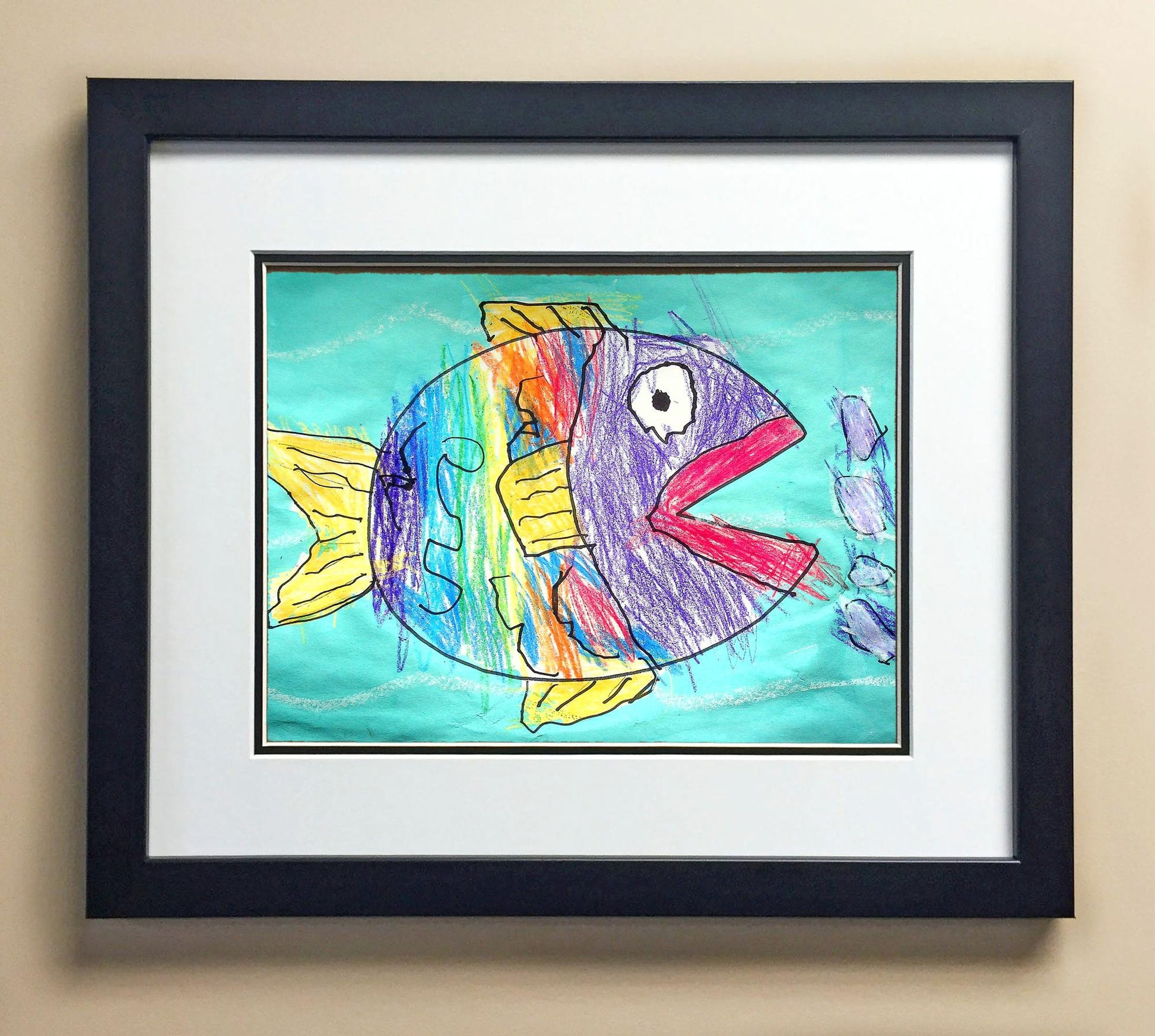 Included with the purchase is the Students Artwork, Frame, double matboard, shatter proof plexiglass, and a ready to hang backerboard with turnbuttons