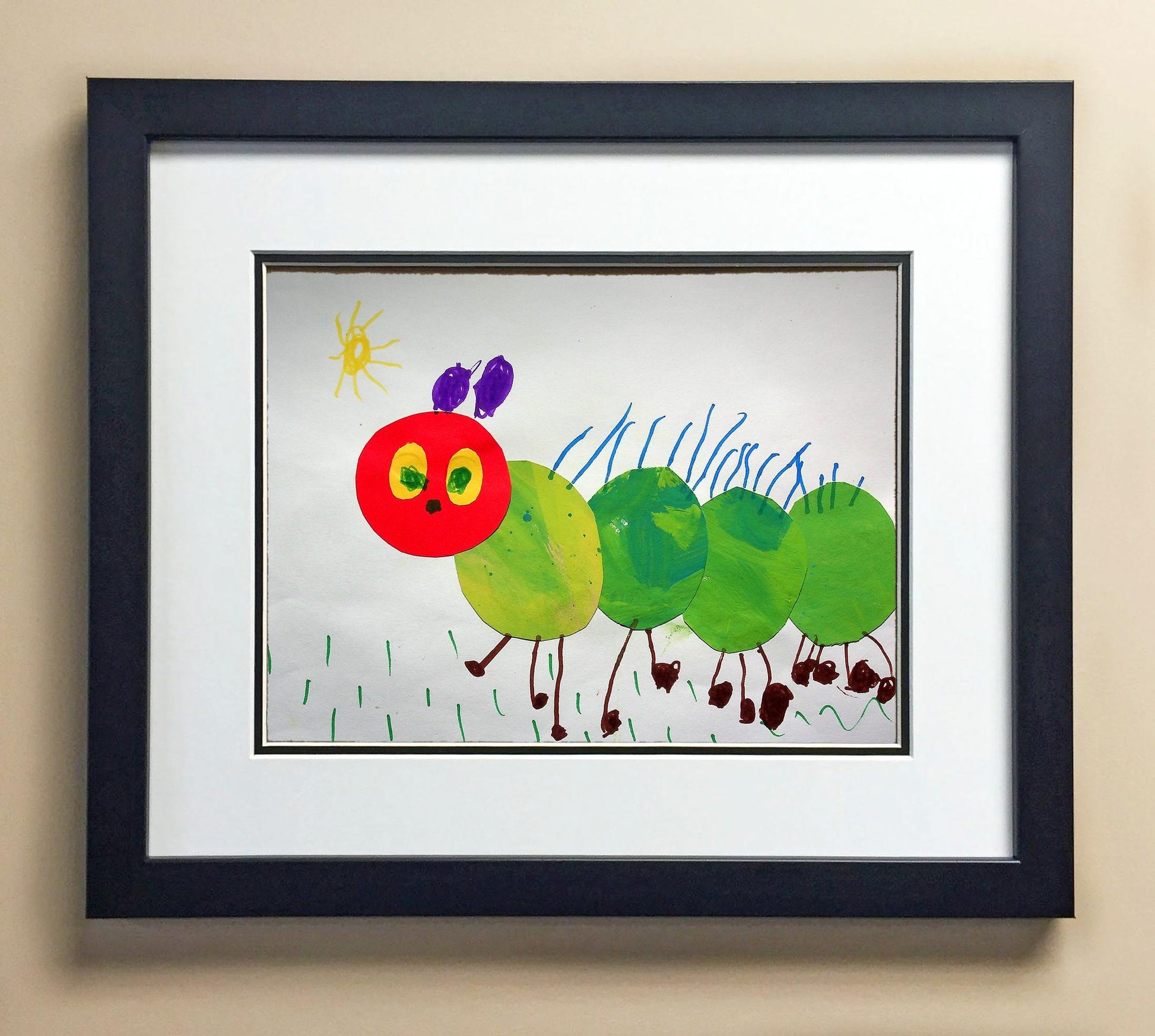 Included with the purchase is the Students Artwork, Frame, double matboard, shatter proof plexiglass, and a ready to hang backerboard with turnbuttons