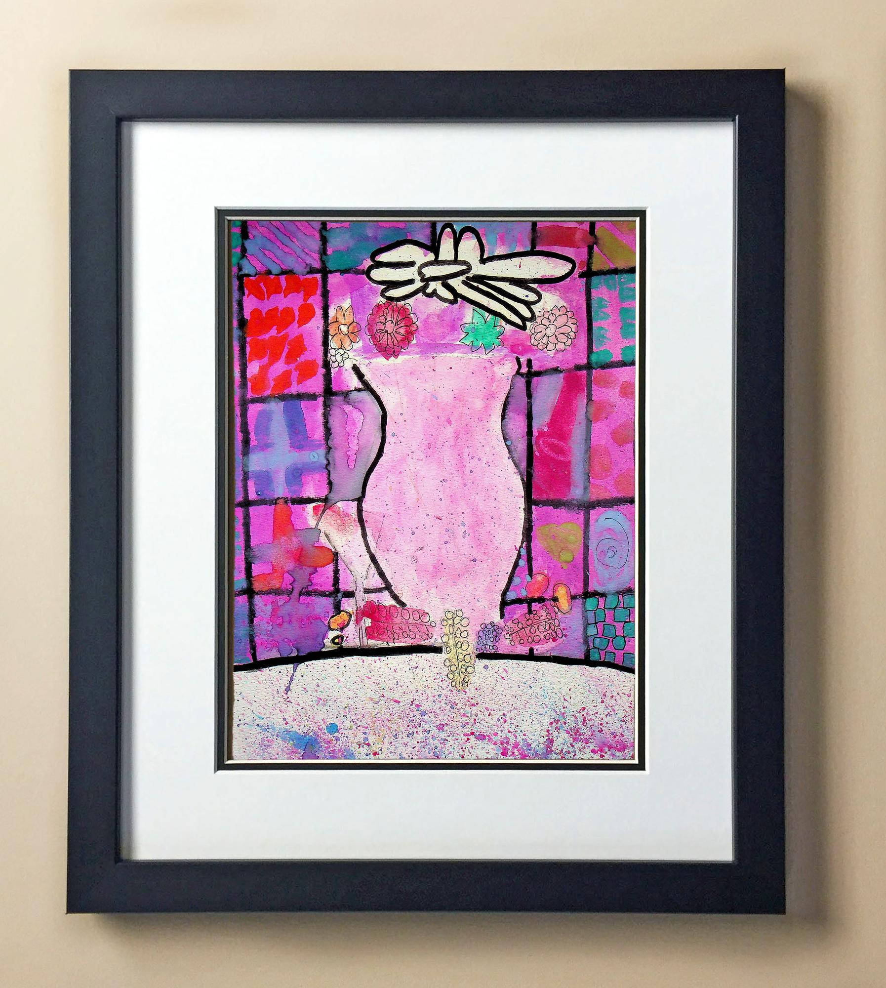 Included with the purchase is the Students Artwork, Frame, double matboard, shatter proof plexiglass, and a ready to hang backerboard with turnbuttons