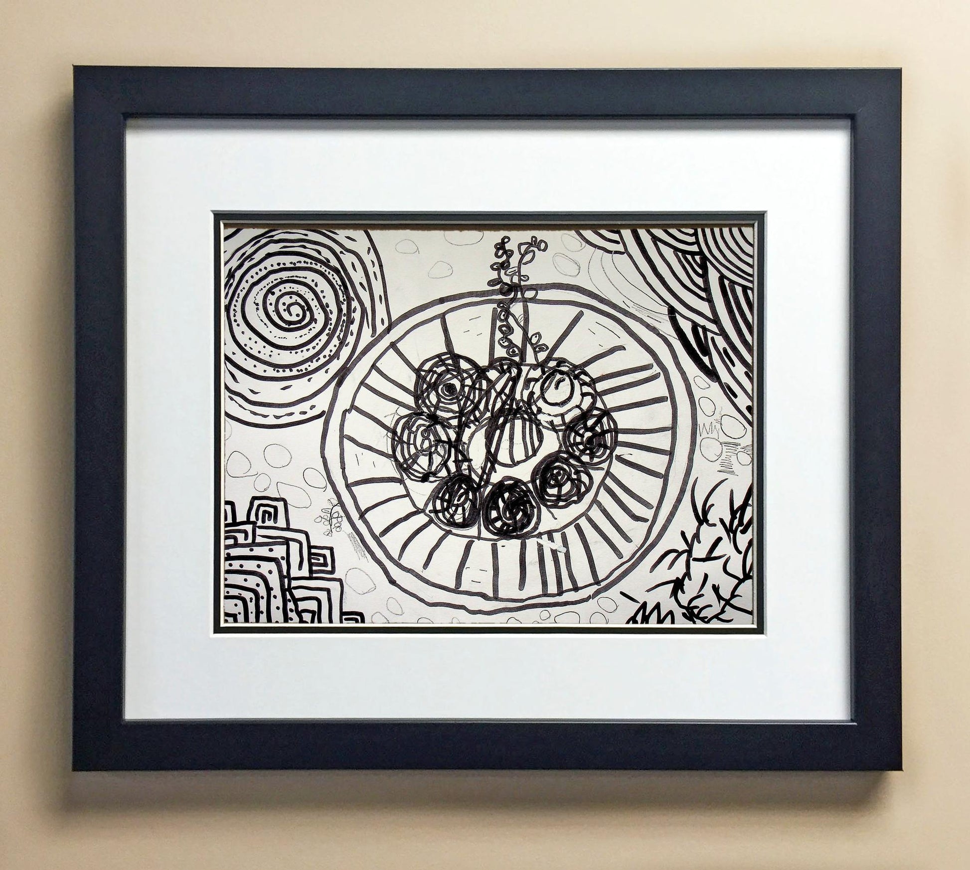 Included with the purchase is the Students Artwork, Frame, double matboard, shatter proof plexiglass, and a ready to hang backerboard with turnbuttons