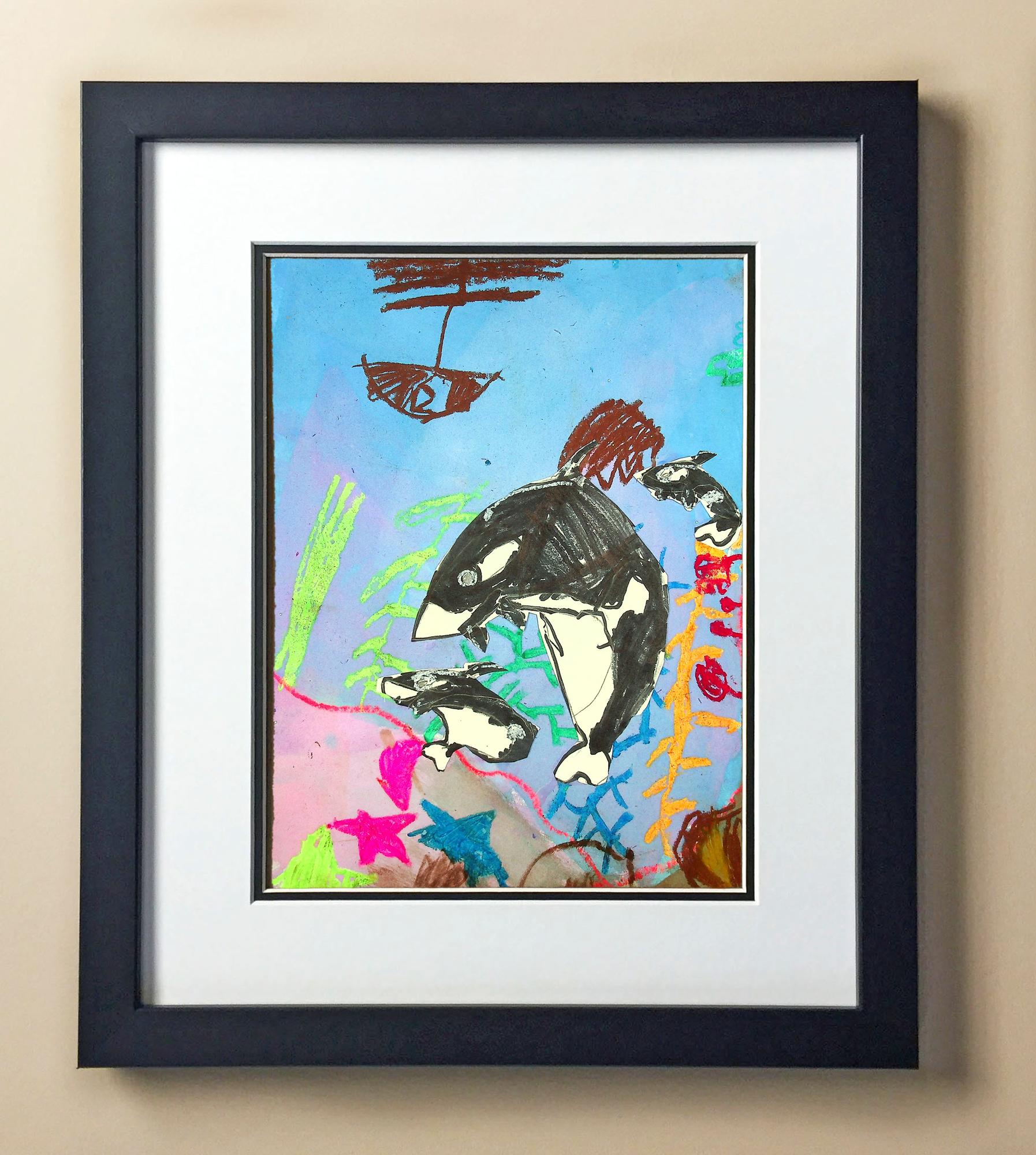 Included with the purchase is the Students Artwork, Frame, double matboard, shatter proof plexiglass, and a ready to hang backerboard with turnbuttons
