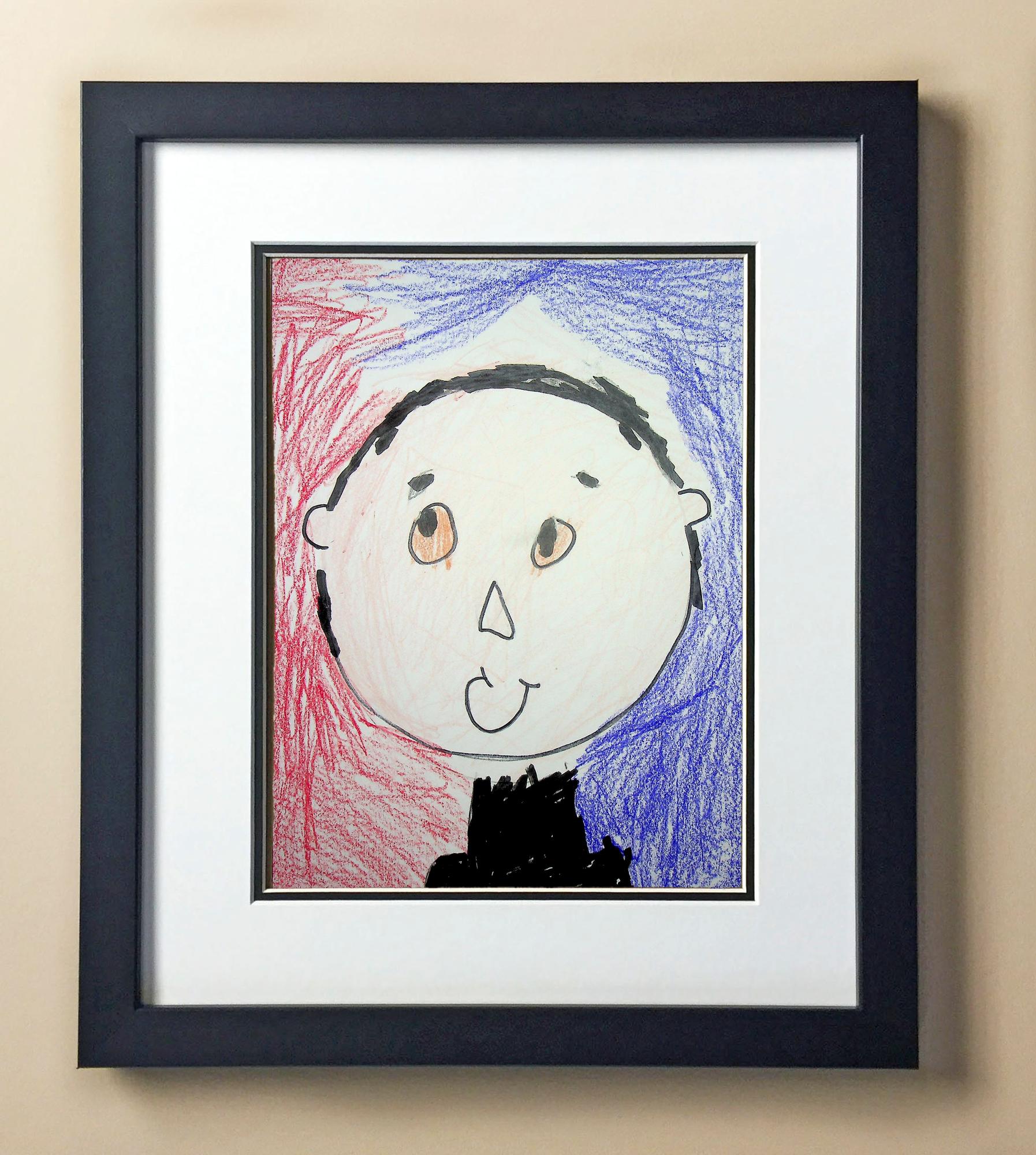Included with the purchase is the Students Artwork, Frame, double matboard, shatter proof plexiglass, and a ready to hang backerboard with turnbuttons