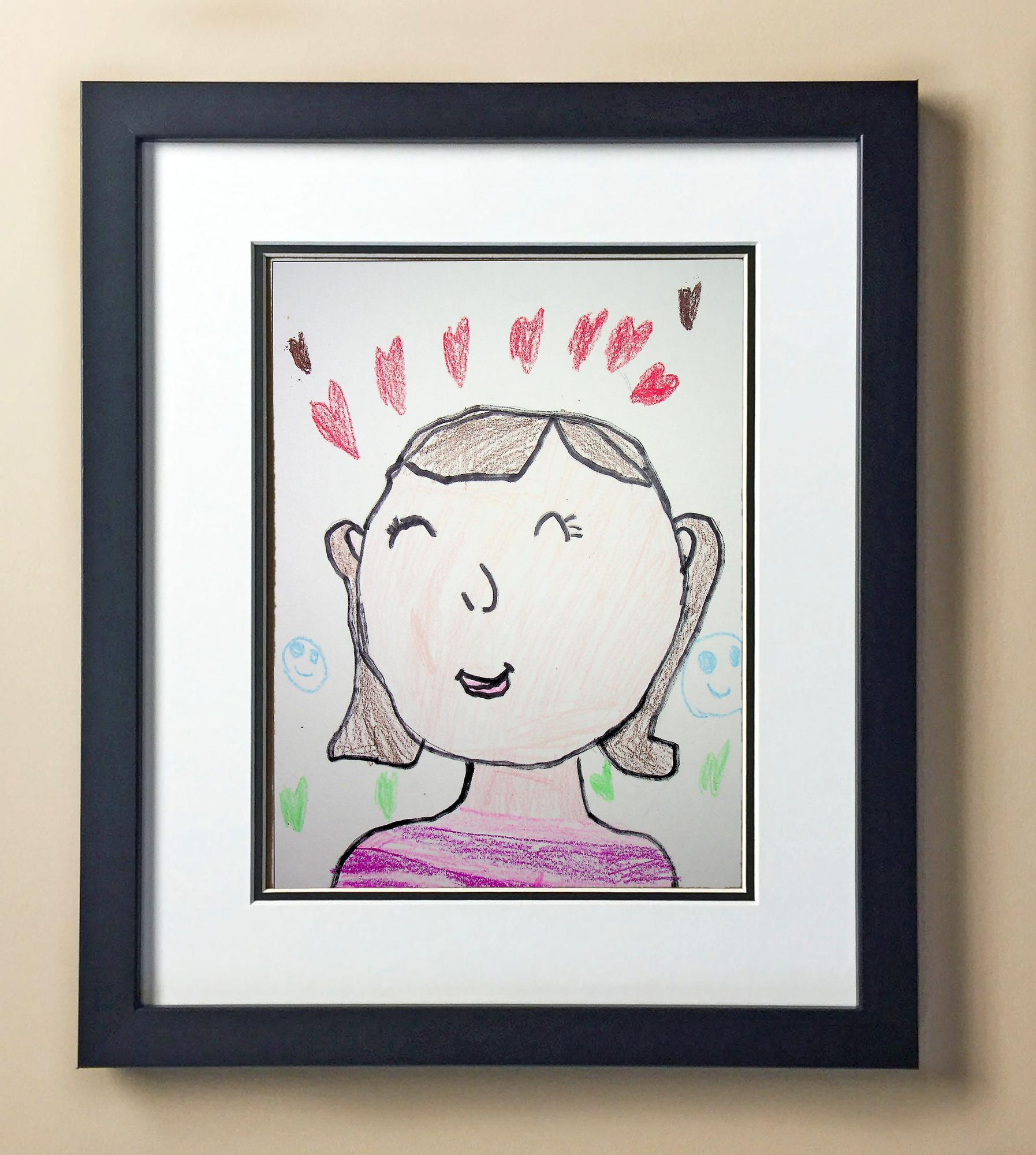 Included with the purchase is the Students Artwork, Frame, double matboard, shatter proof plexiglass, and a ready to hang backerboard with turnbuttons