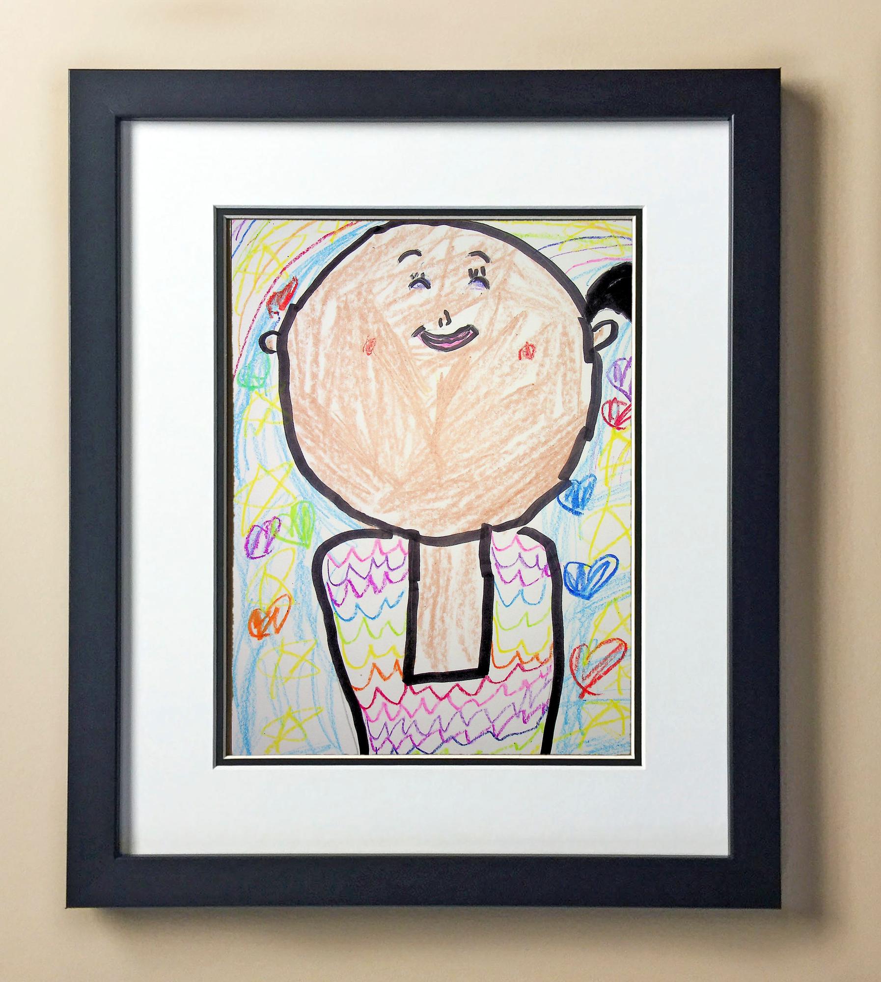 Included with the purchase is the Students Artwork, Frame, double matboard, shatter proof plexiglass, and a ready to hang backerboard with turnbuttons