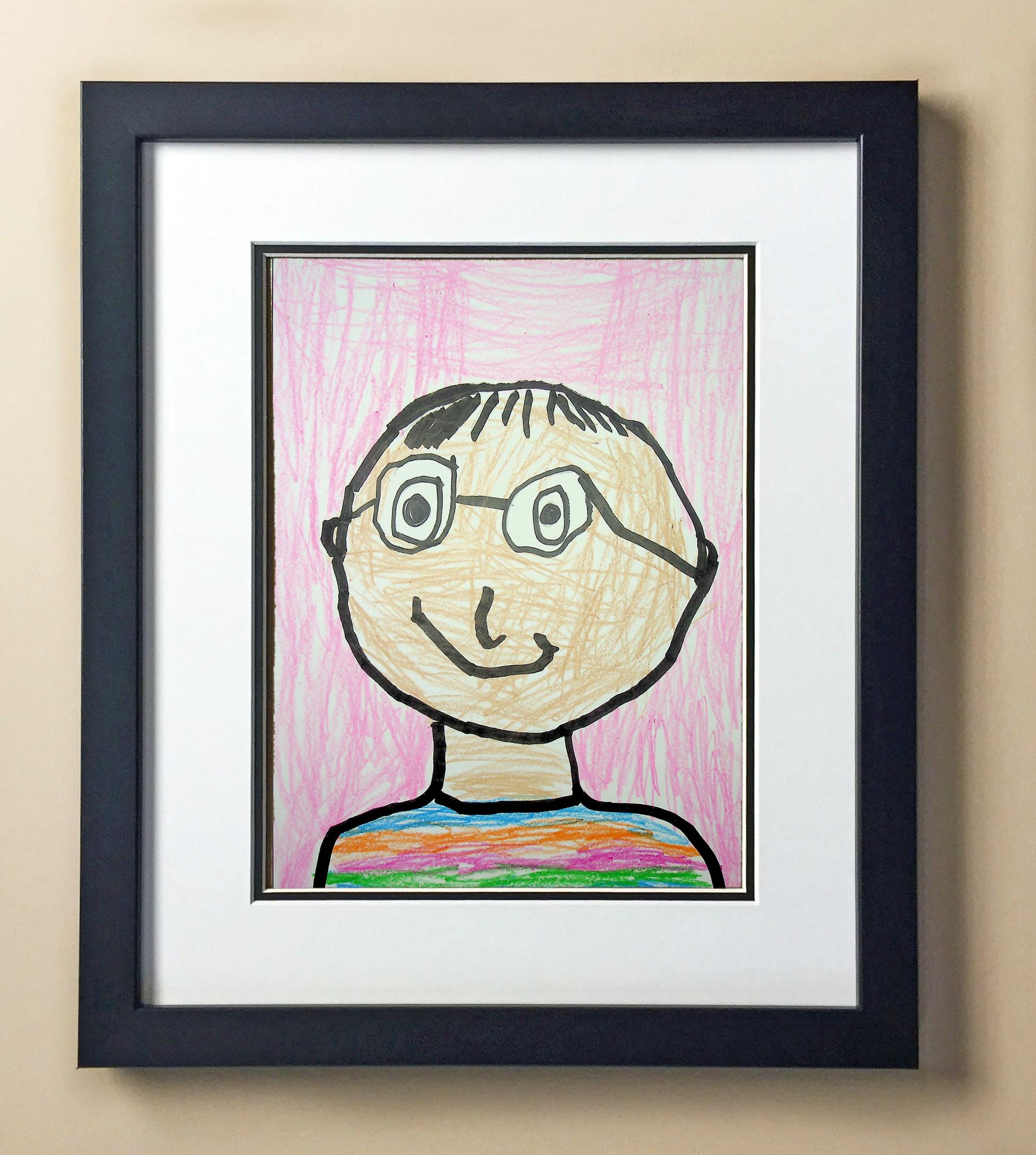 Included with the purchase is the Students Artwork, Frame, double matboard, shatter proof plexiglass, and a ready to hang backerboard with turnbuttons