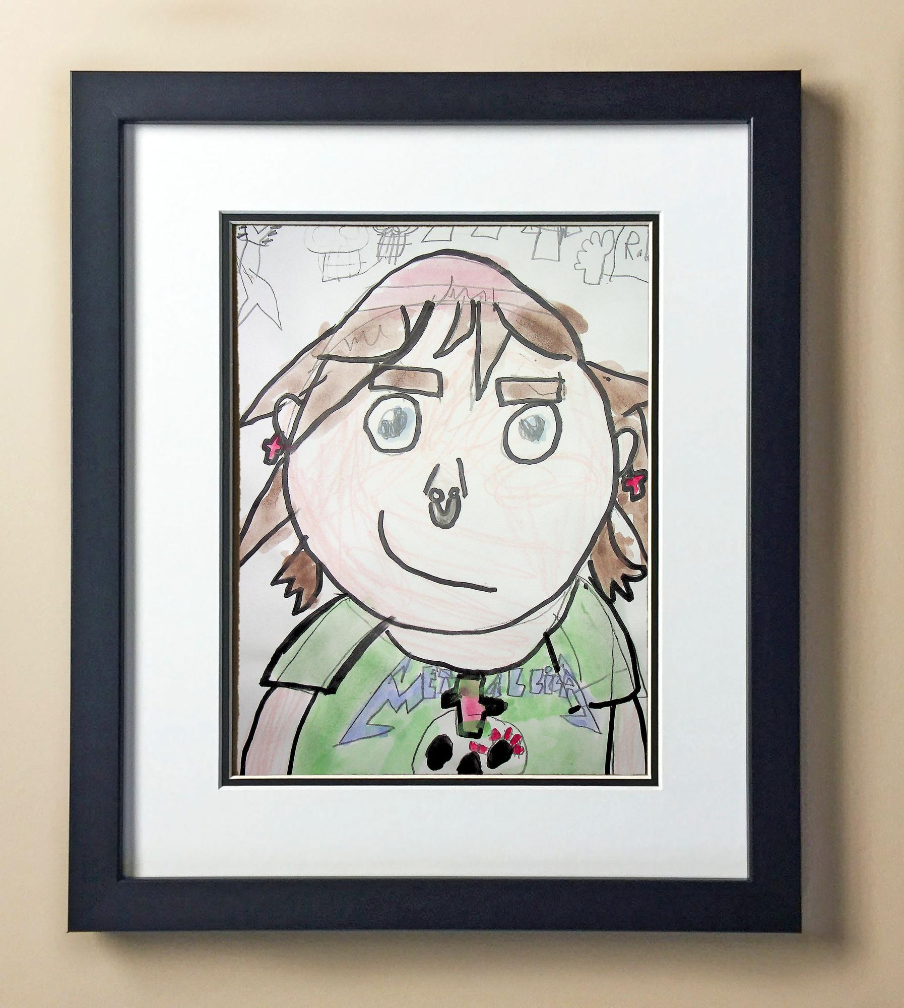 Included with the purchase is the Students Artwork, Frame, double matboard, shatter proof plexiglass, and a ready to hang backerboard with turnbuttons