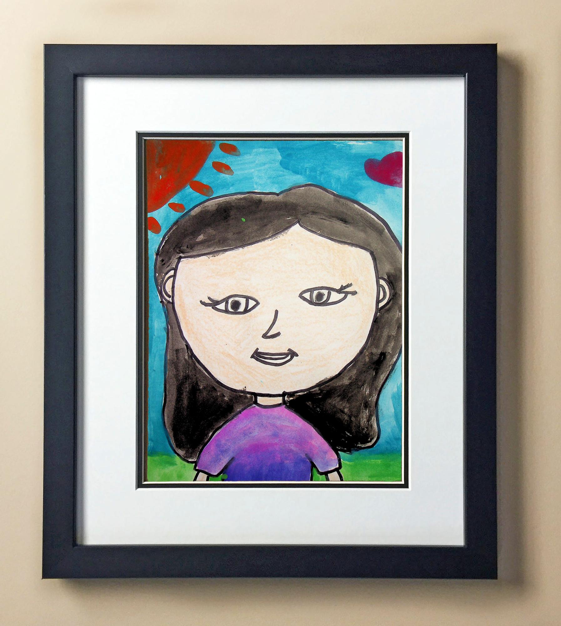 Included with the purchase is the Students Artwork, Frame, double matboard, shatter proof plexiglass, and a ready to hang backerboard with turnbuttons