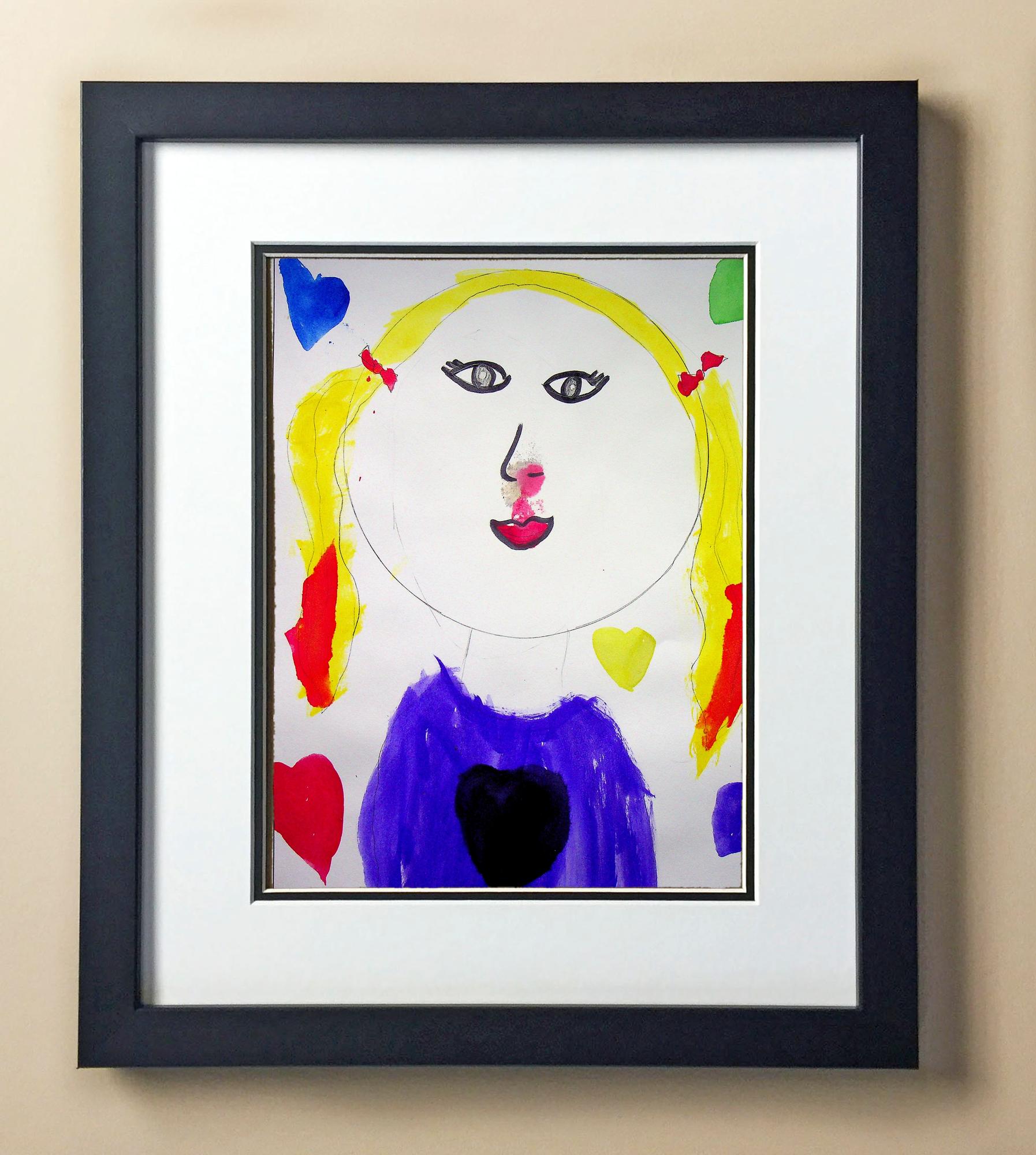 Included with the purchase is the Students Artwork, Frame, double matboard, shatter proof plexiglass, and a ready to hang backerboard with turnbuttons