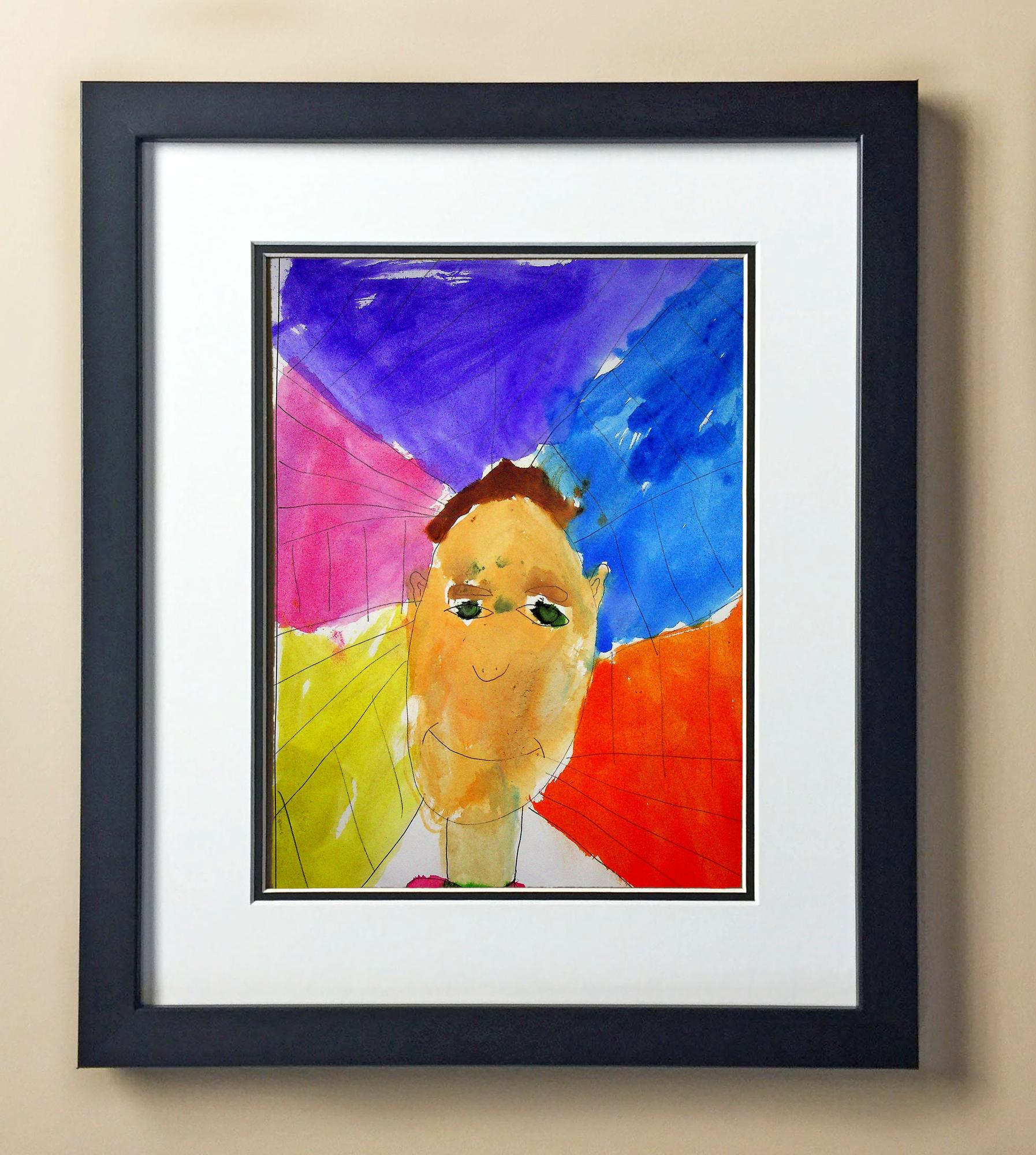 Included with the purchase is the Students Artwork, Frame, double matboard, shatter proof plexiglass, and a ready to hang backerboard with turnbuttons