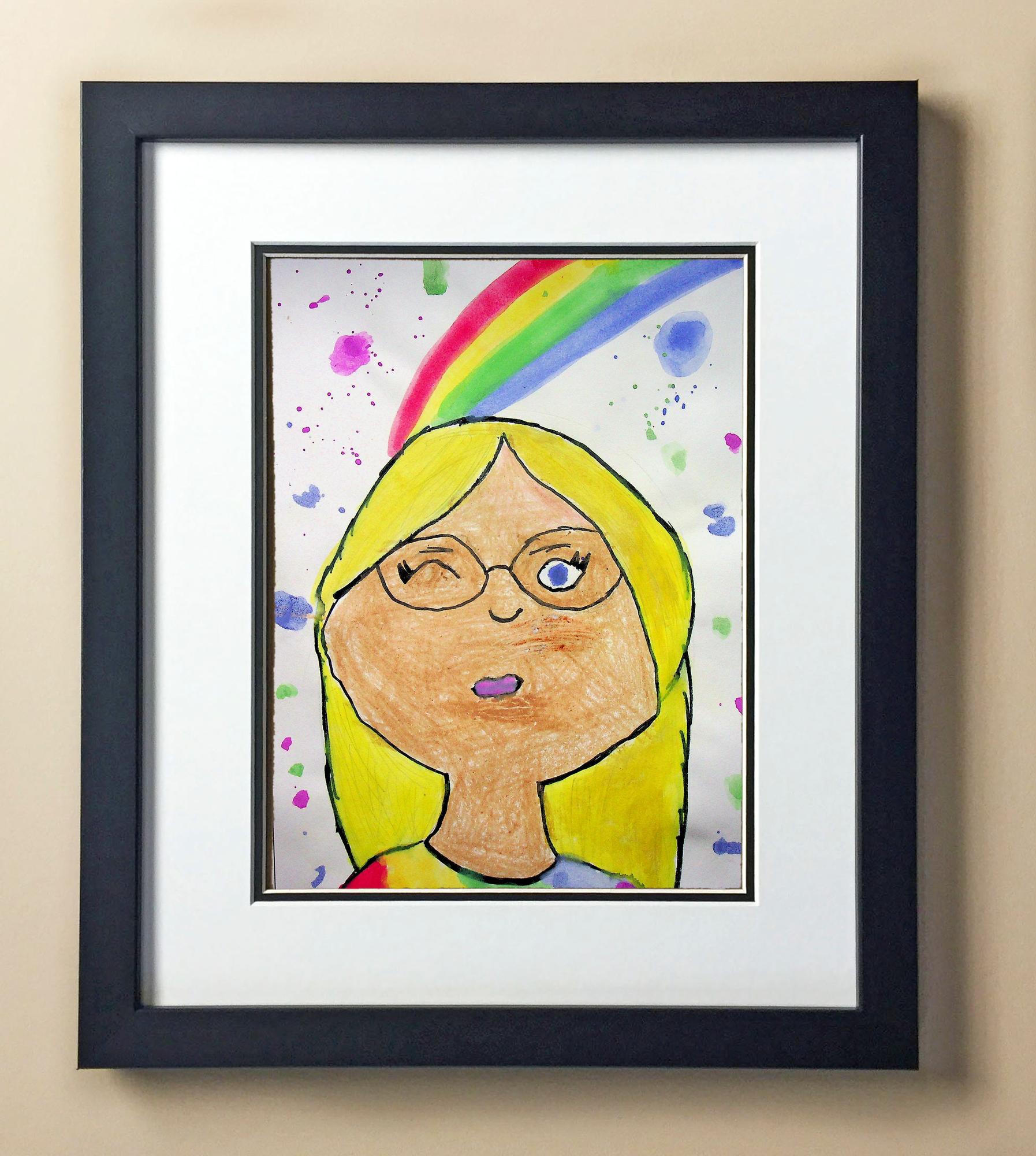 Included with the purchase is the Students Artwork, Frame, double matboard, shatter proof plexiglass, and a ready to hang backerboard with turnbuttons