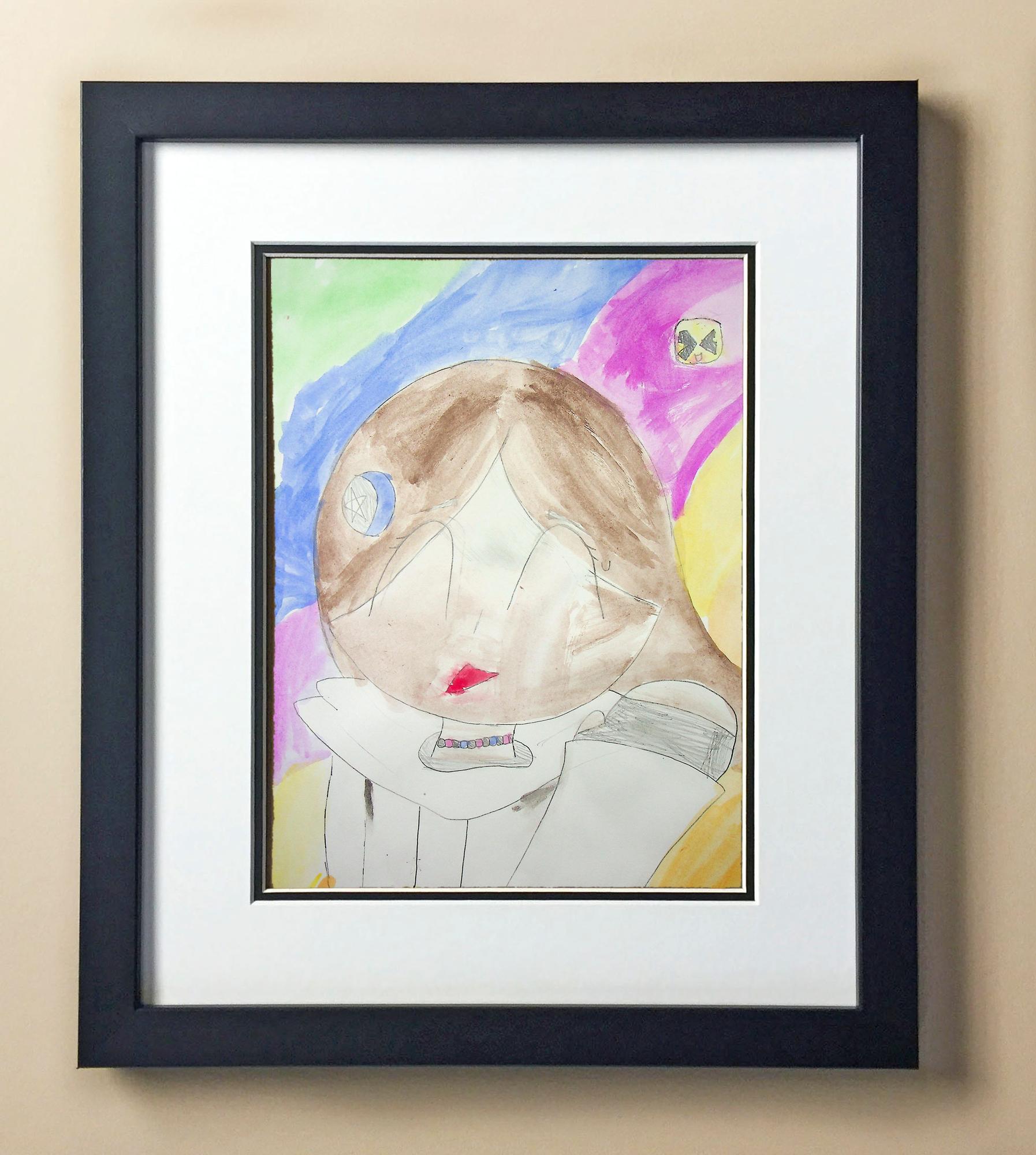Included with the purchase is the Students Artwork, Frame, double matboard, shatter proof plexiglass, and a ready to hang backerboard with turnbuttons