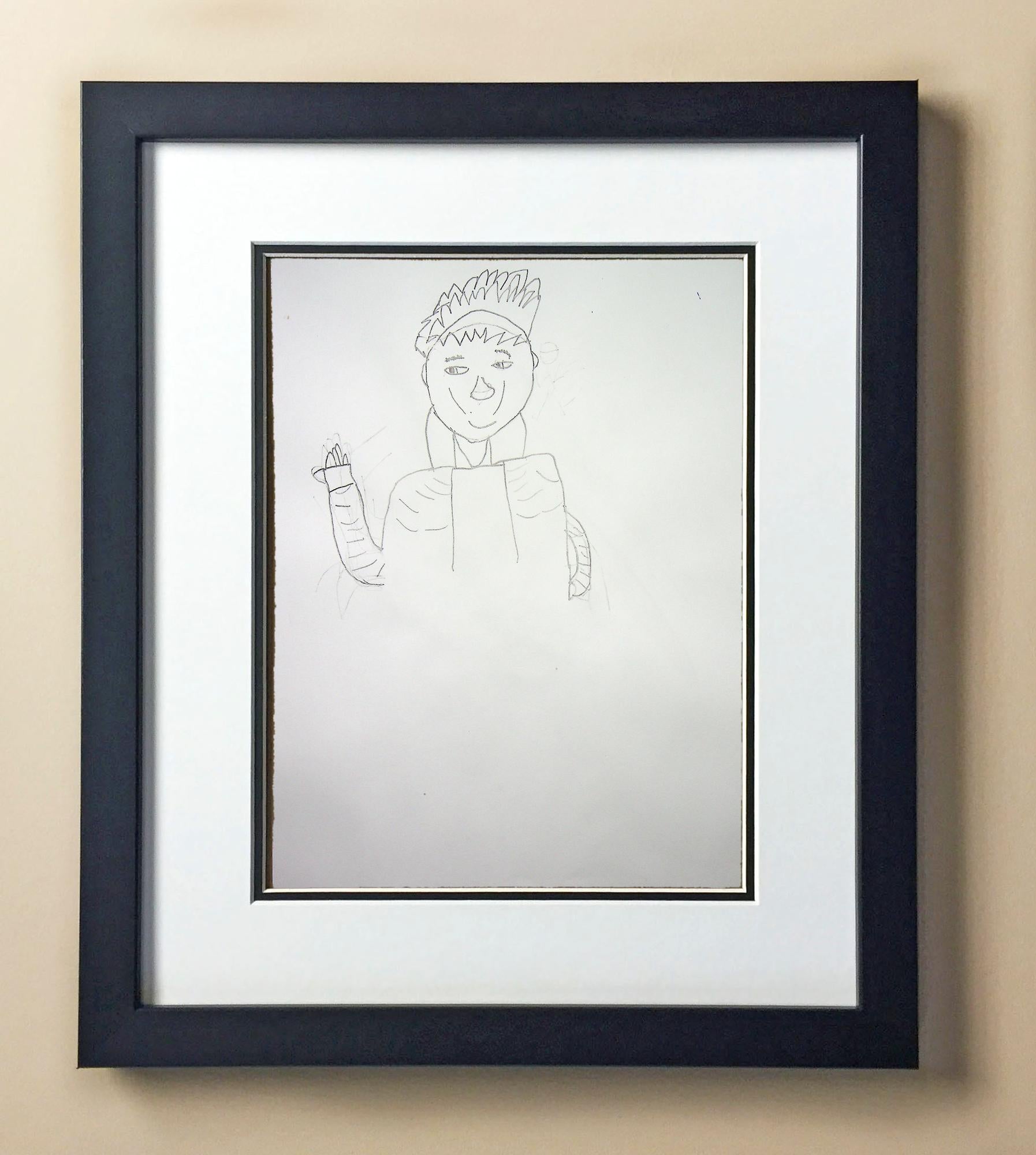 Included with the purchase is the Students Artwork, Frame, double matboard, shatter proof plexiglass, and a ready to hang backerboard with turnbuttons