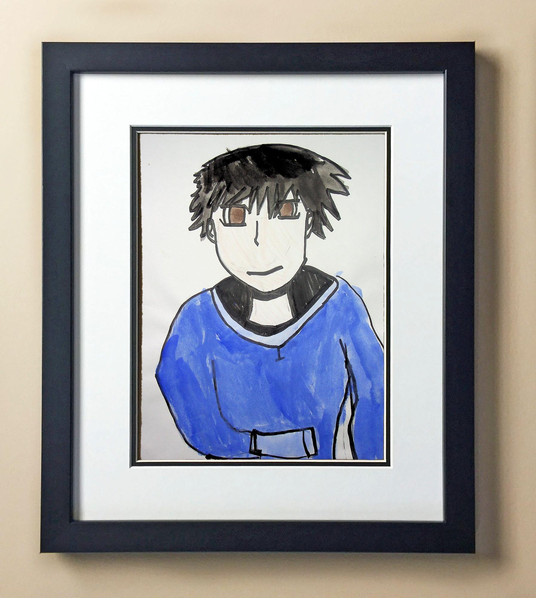 Included with the purchase is the Students Artwork, Frame, double matboard, shatter proof plexiglass, and a ready to hang backerboard with turnbuttons