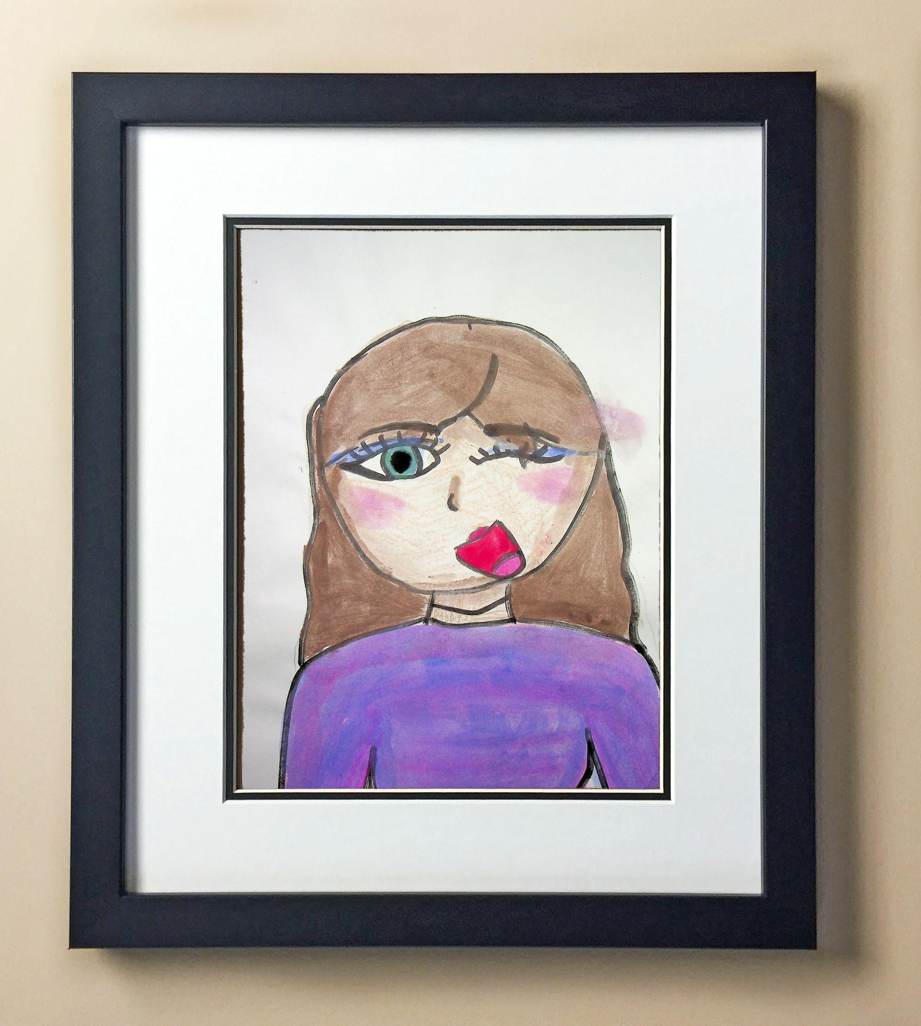 Included with the purchase is the Students Artwork, Frame, double matboard, shatter proof plexiglass, and a ready to hang backerboard with turnbuttons