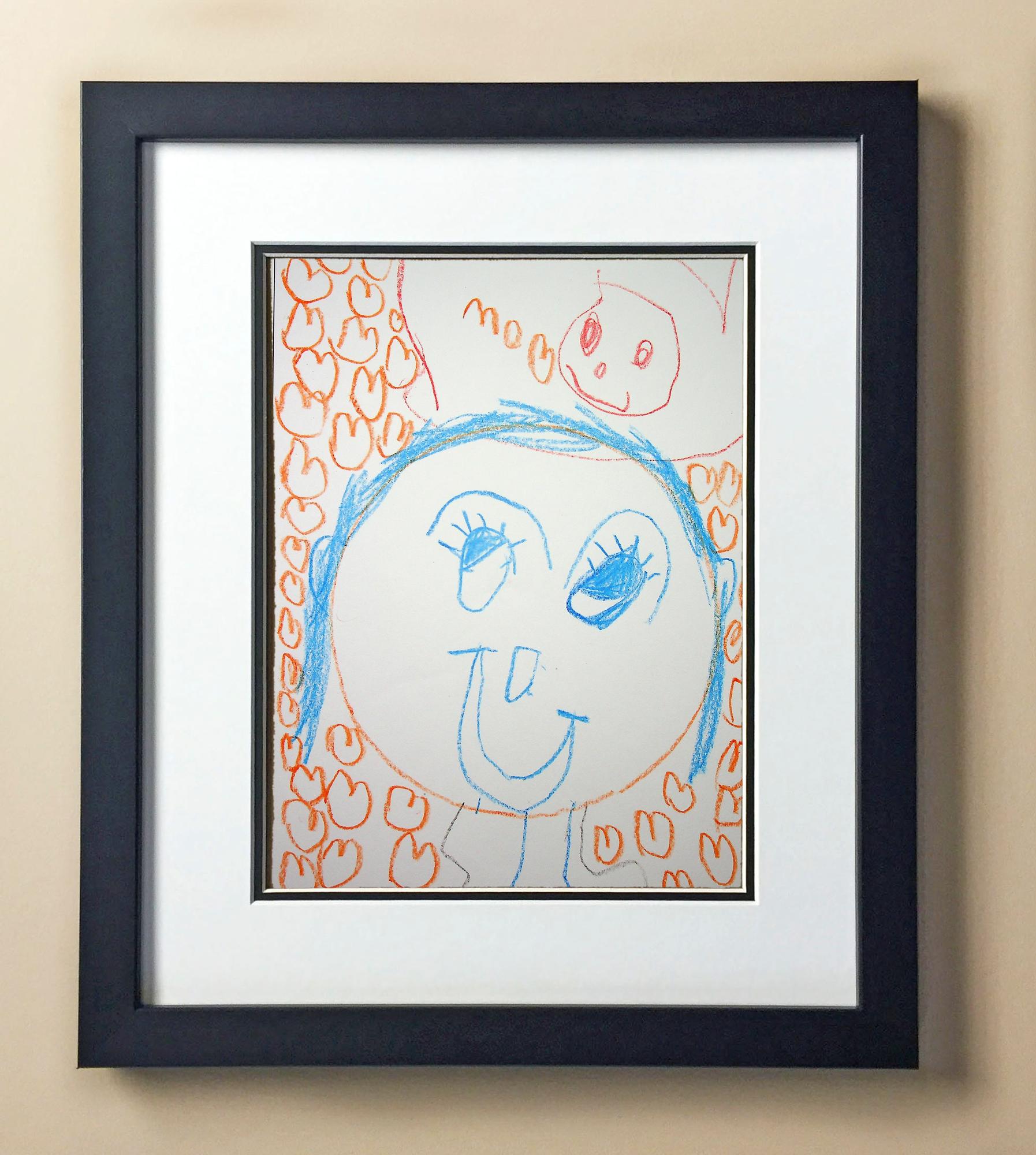Included with the purchase is the Students Artwork, Frame, double matboard, shatter proof plexiglass, and a ready to hang backerboard with turnbuttons
