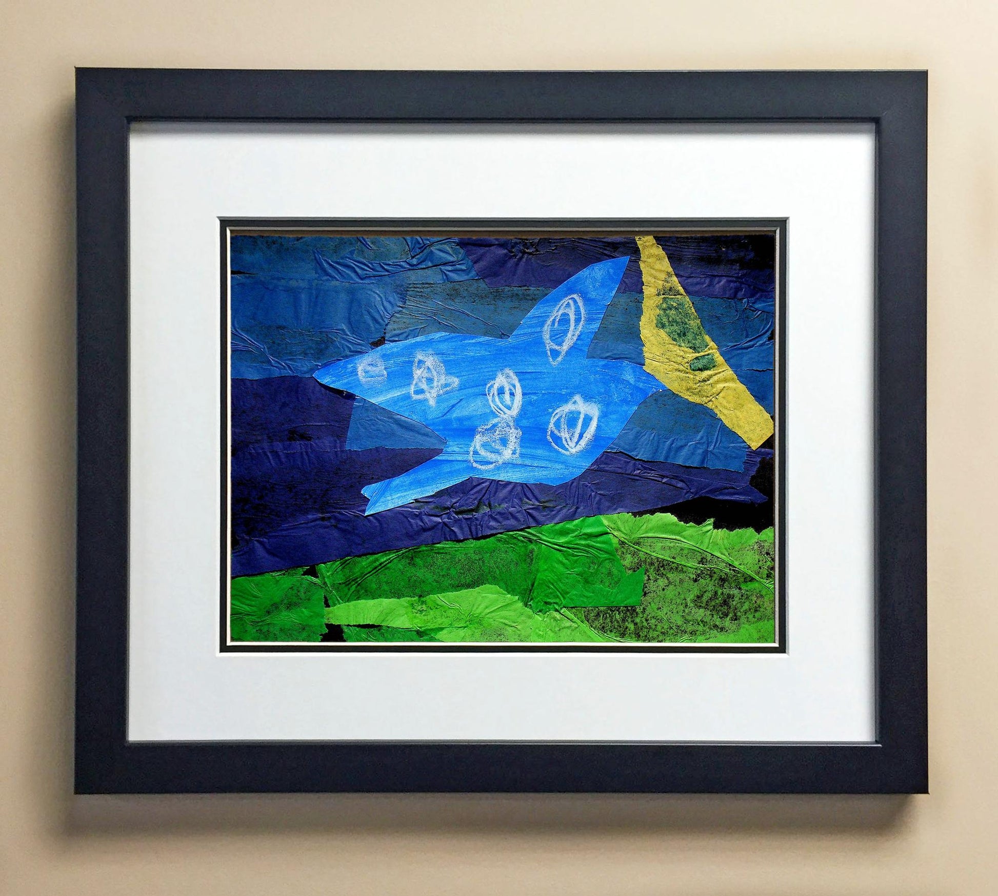 Included with the purchase is the Students Artwork, Frame, double matboard, shatter proof plexiglass, and a ready to hang backerboard with turnbuttons