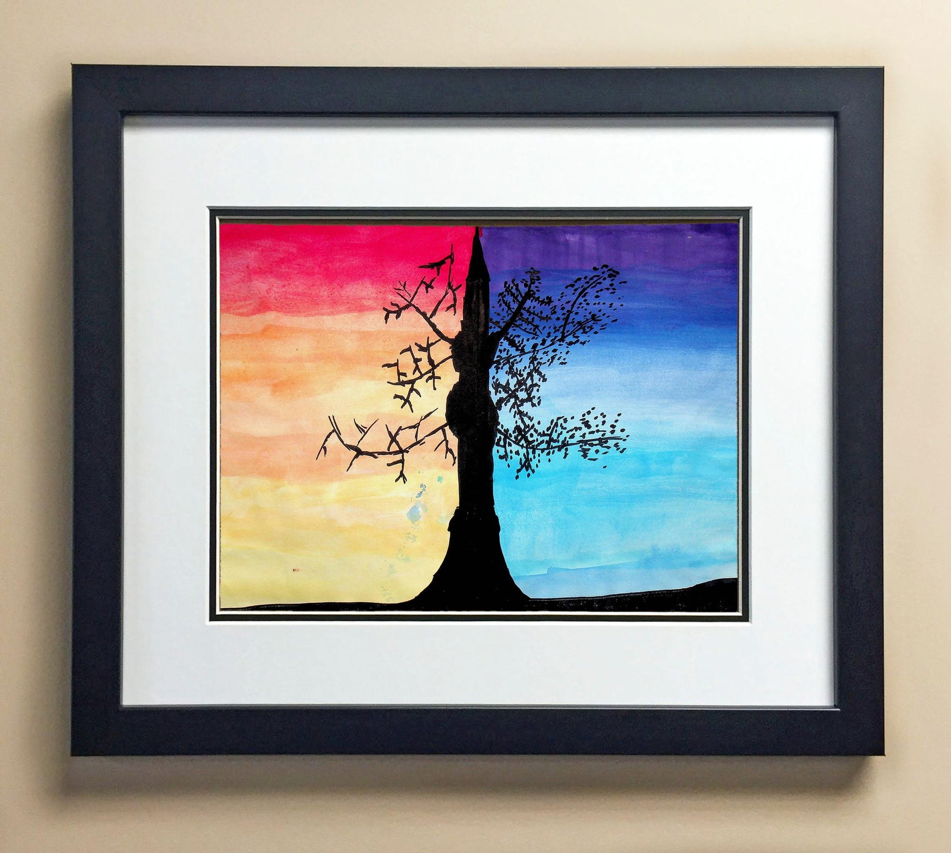 Included with the purchase is the Students Artwork, Frame, double matboard, shatter proof plexiglass, and a ready to hang backerboard with turnbuttons