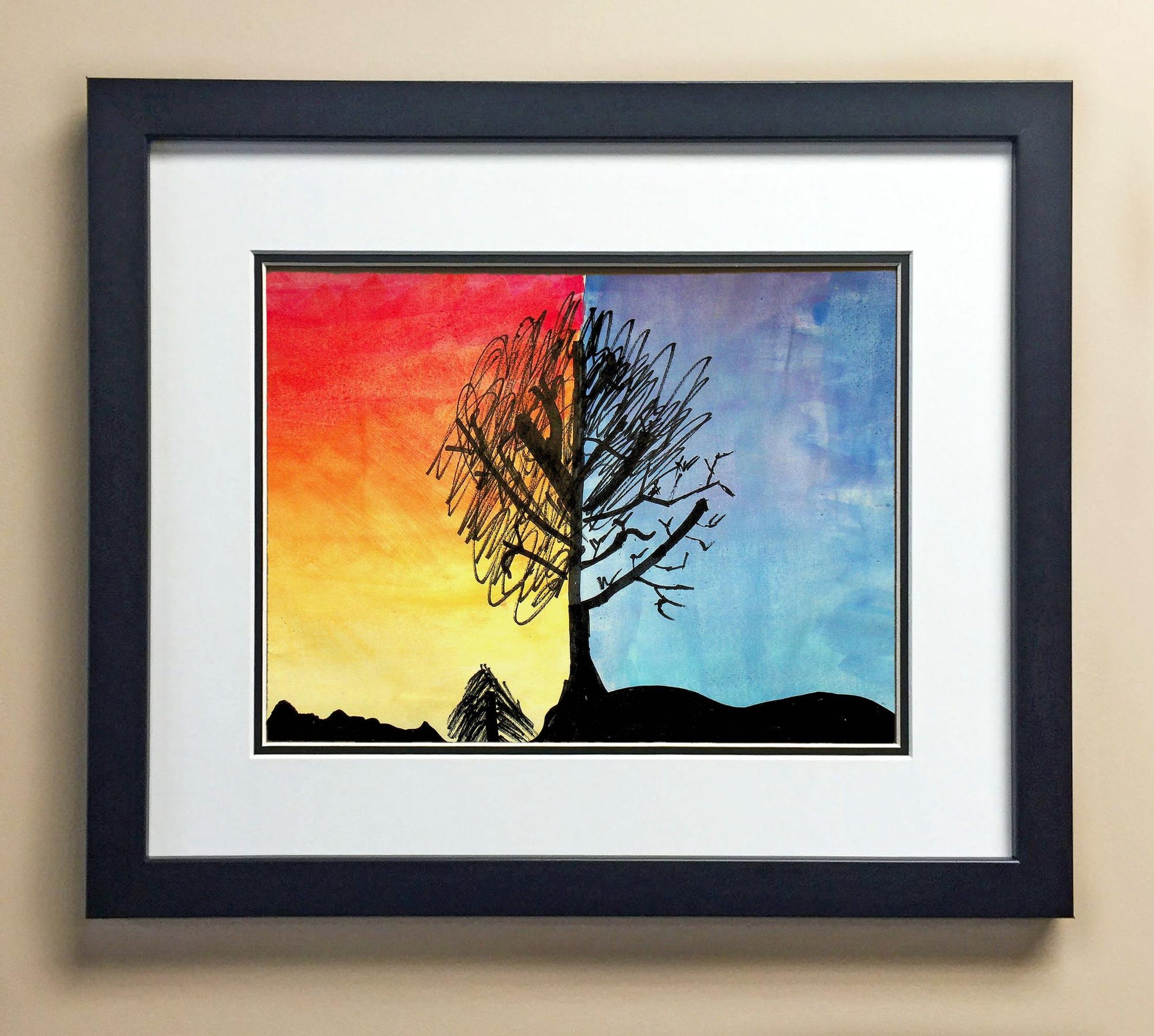 Included with the purchase is the Students Artwork, Frame, double matboard, shatter proof plexiglass, and a ready to hang backerboard with turnbuttons
