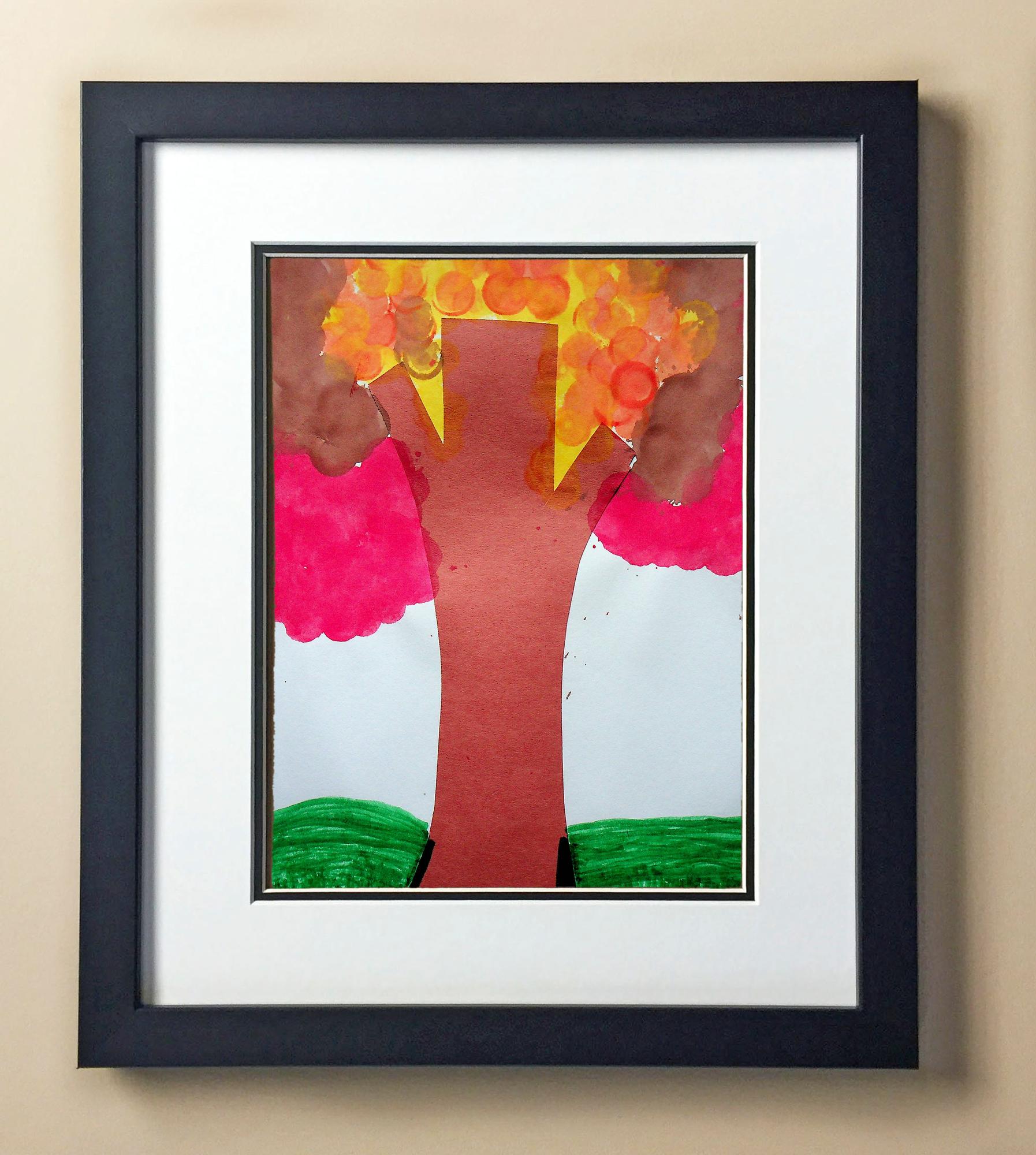 Included with the purchase is the Students Artwork, Frame, double matboard, shatter proof plexiglass, and a ready to hang backerboard with turnbuttons