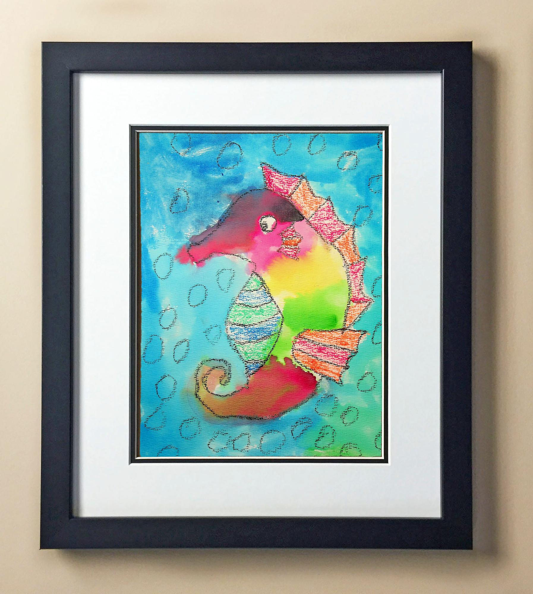 Included with the purchase is the Students Artwork, Frame, double matboard, shatter proof plexiglass, and a ready to hang backerboard with turnbuttons