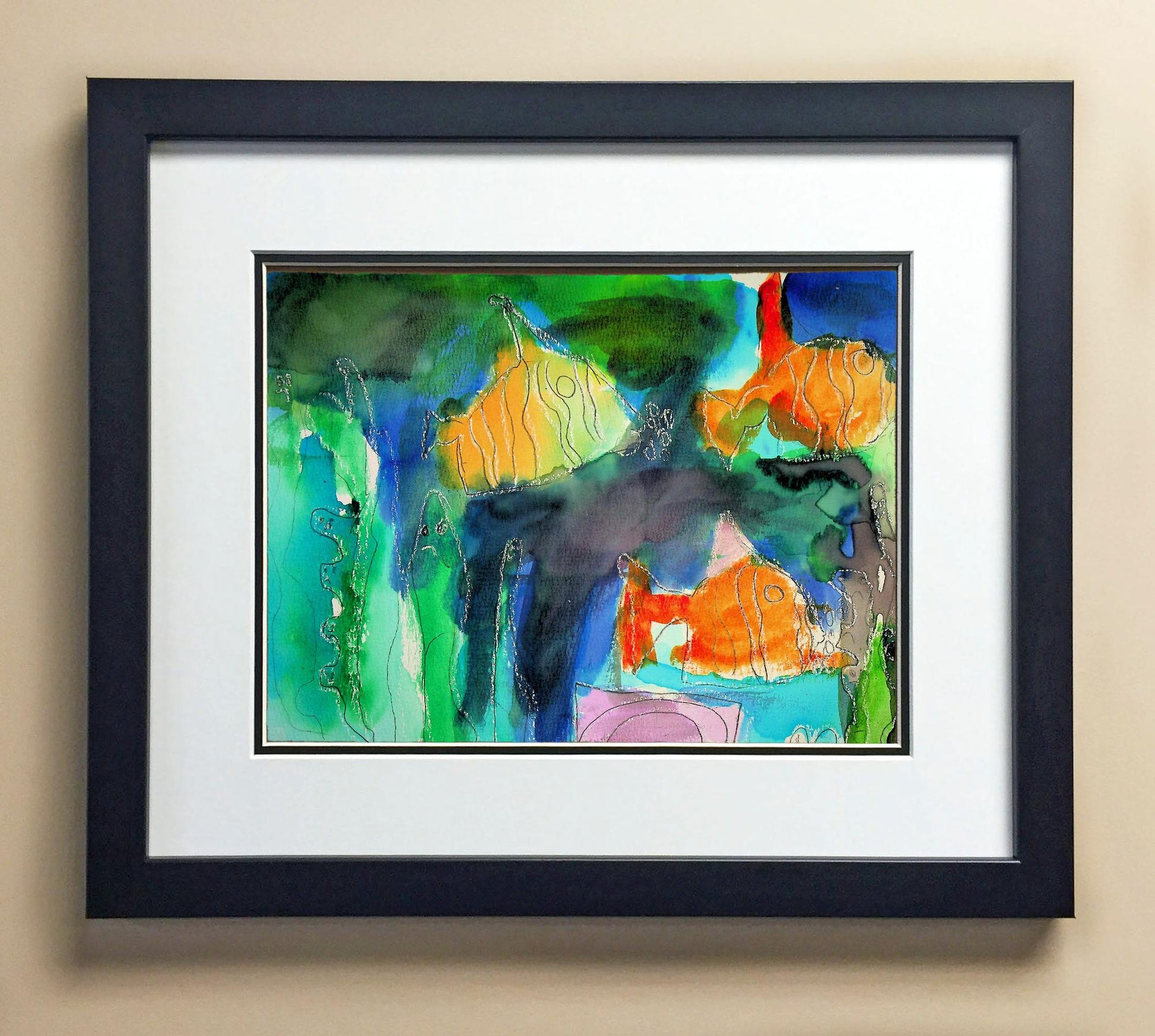 Included with the purchase is the Students Artwork, Frame, double matboard, shatter proof plexiglass, and a ready to hang backerboard with turnbuttons