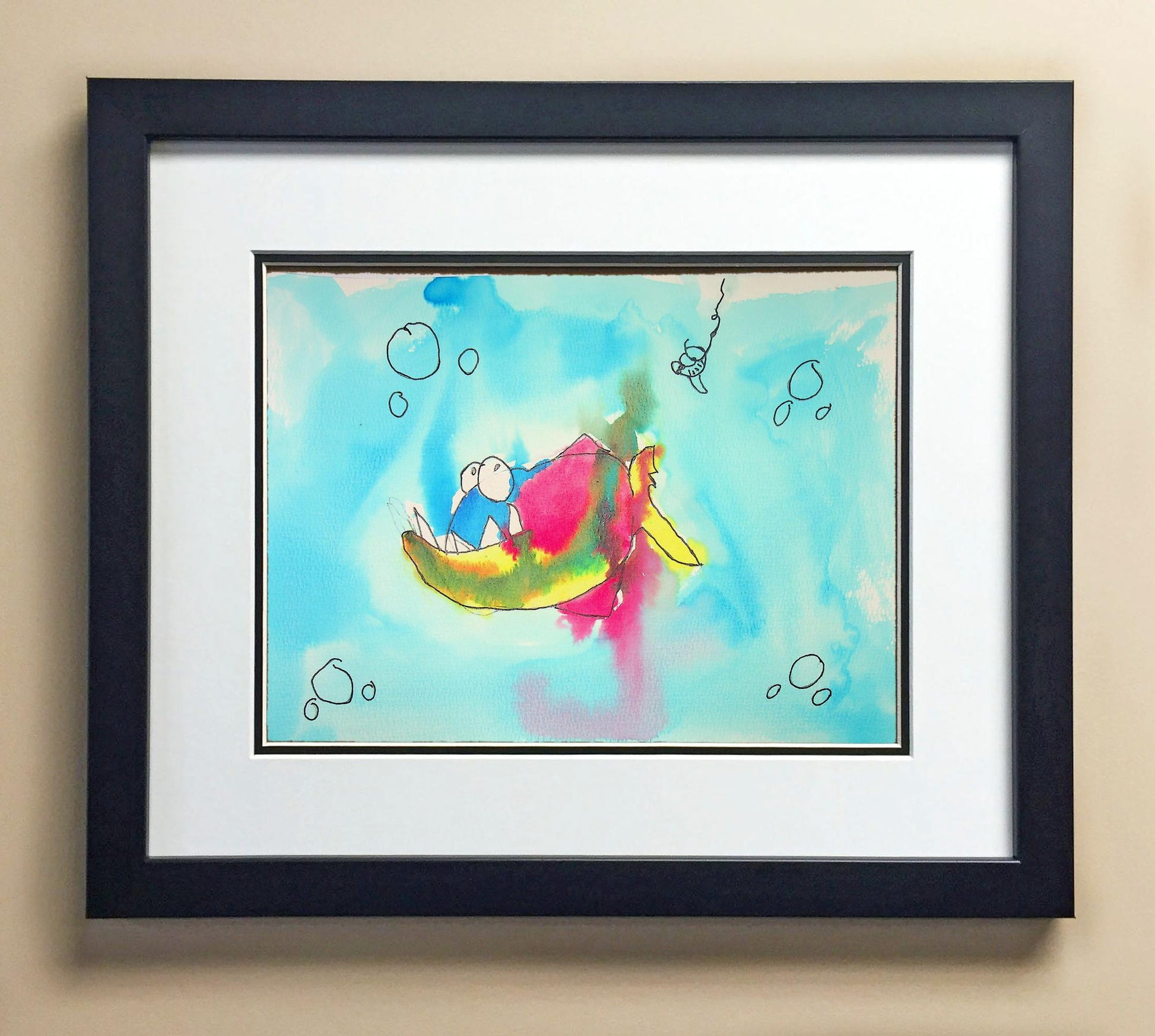 Included with the purchase is the Students Artwork, Frame, double matboard, shatter proof plexiglass, and a ready to hang backerboard with turnbuttons