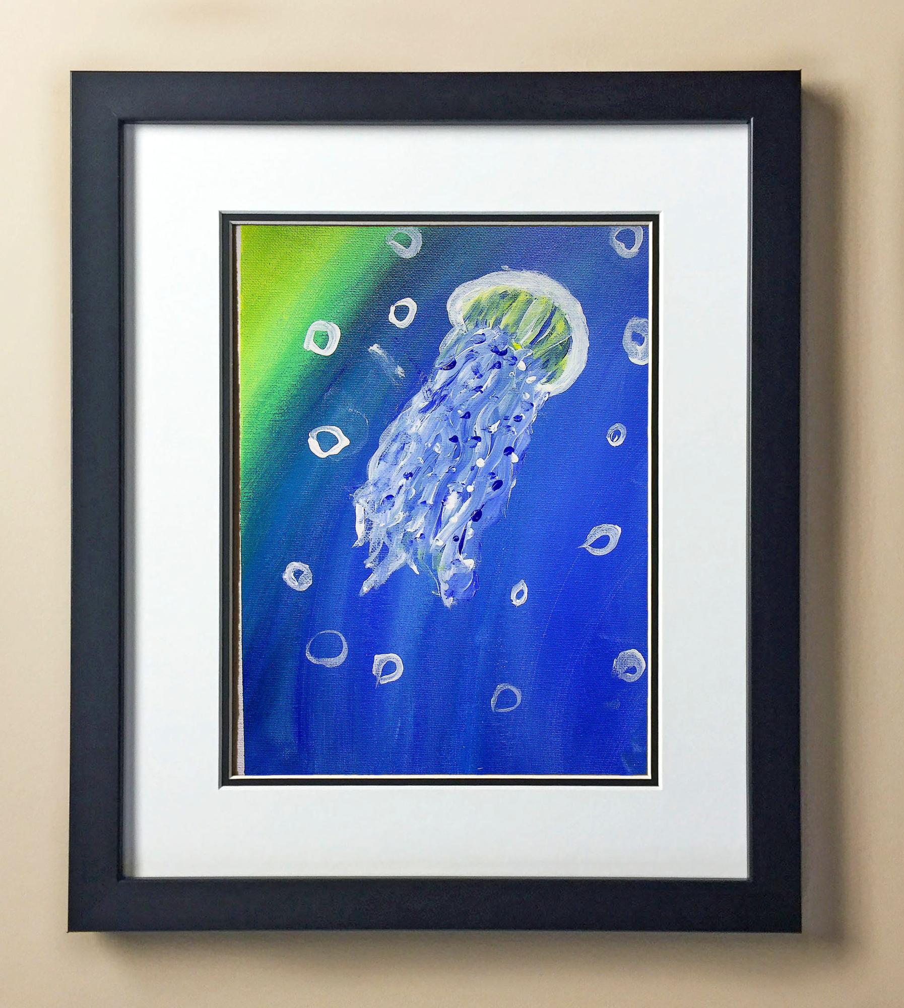 Included with the purchase is the Students Artwork, Frame, double matboard, shatter proof plexiglass, and a ready to hang backerboard with turnbuttons