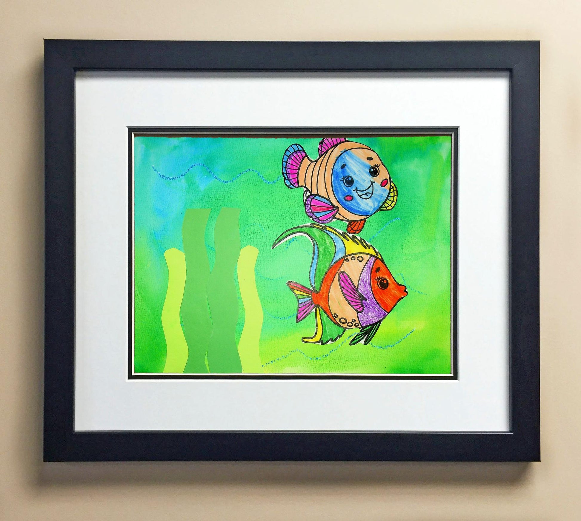 Included with the purchase is the Students Artwork, Frame, double matboard, shatter proof plexiglass, and a ready to hang backerboard with turnbuttons